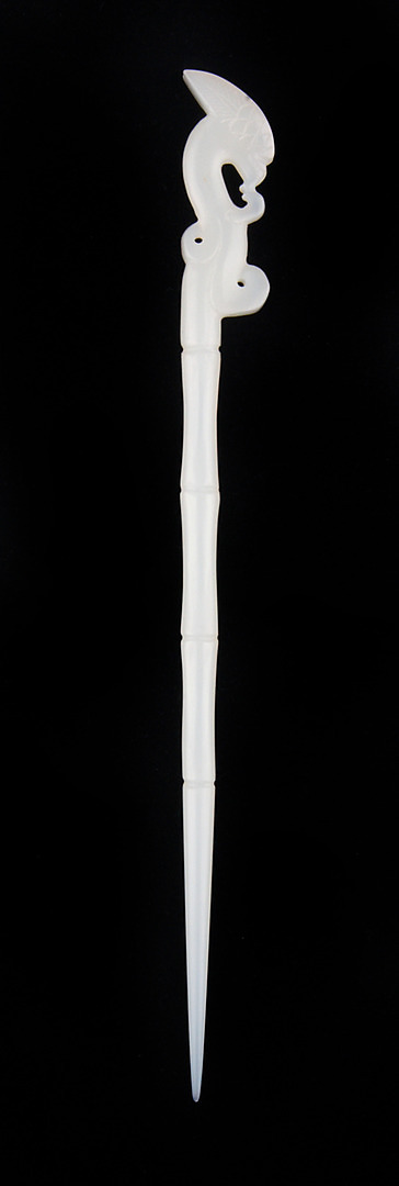274207. CHINA. "JADE, KLIPPET HÅRNÅL I FORM AF BAMBU & FUGLE".