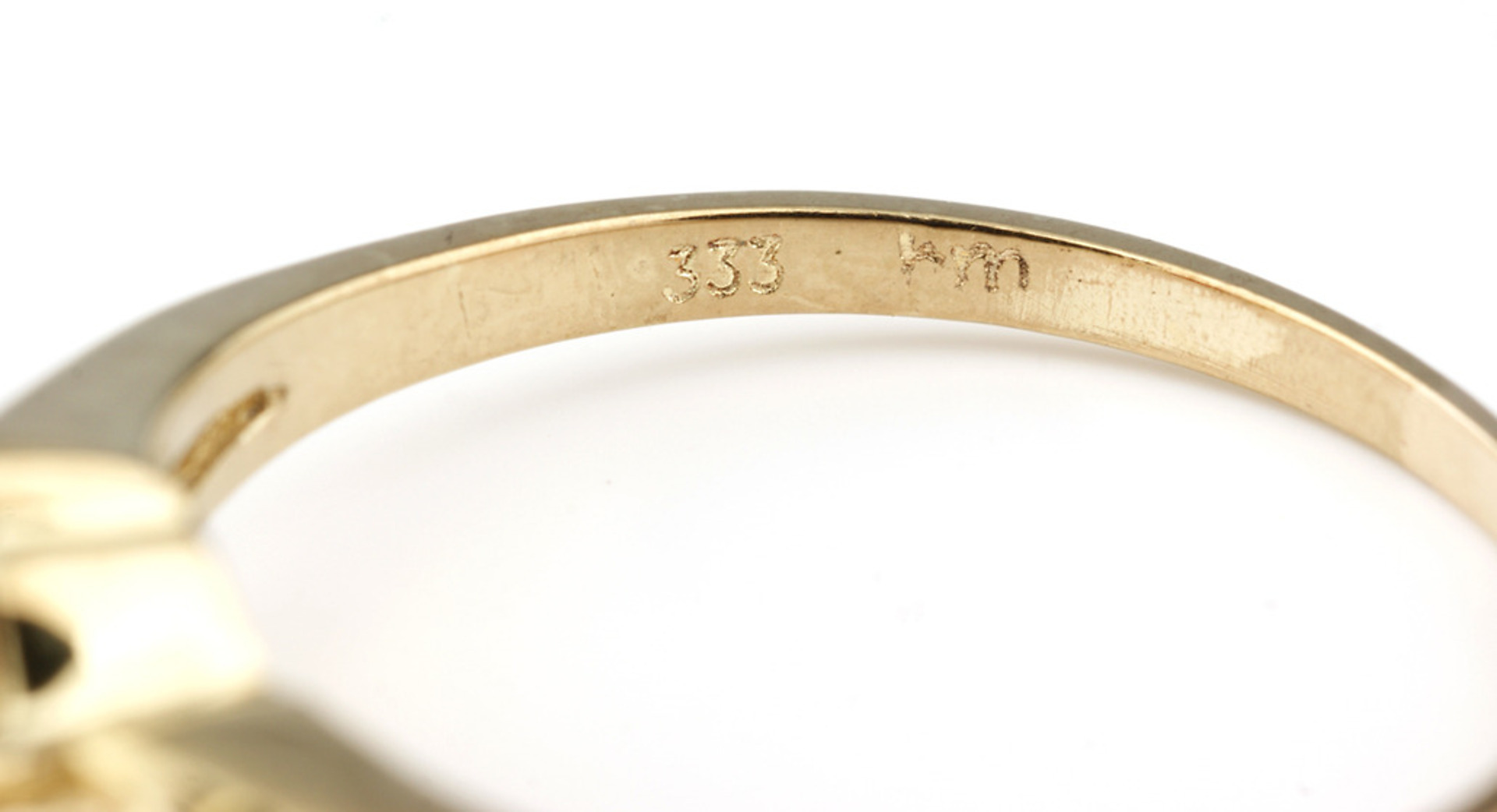 274327. GRANATRING, 333 gult guld, ca. 2,6 g.