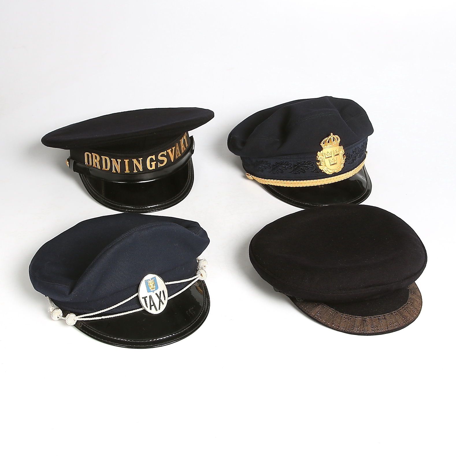 274486. UNIFORM HATTE, 4 stk, bl.a. Politi. 1900-tallet.