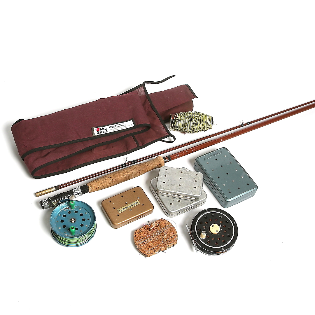 274552. FLUESTANG MED TILBEHØR, bl.a. Abu. 1900-tallet.