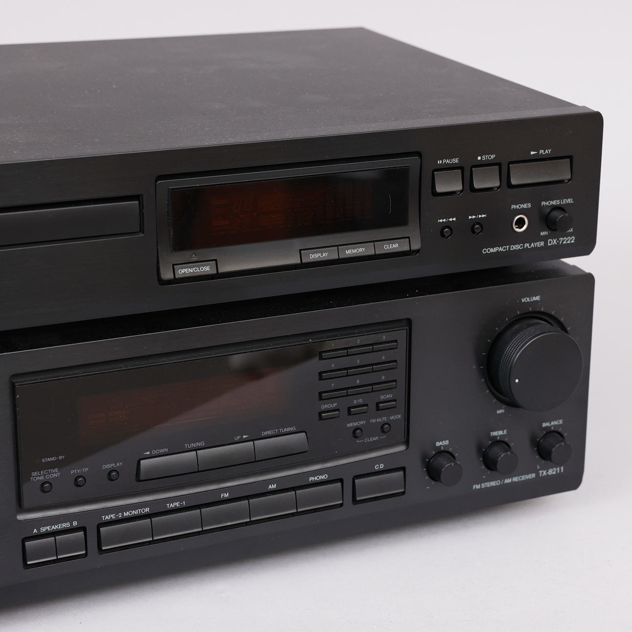 Onkyo TX-8211 stereomodtager, fabrikationsår 1997-2006 Onkyo DX 7222 CD-afspiller, fabrikationsår 2000-2001.