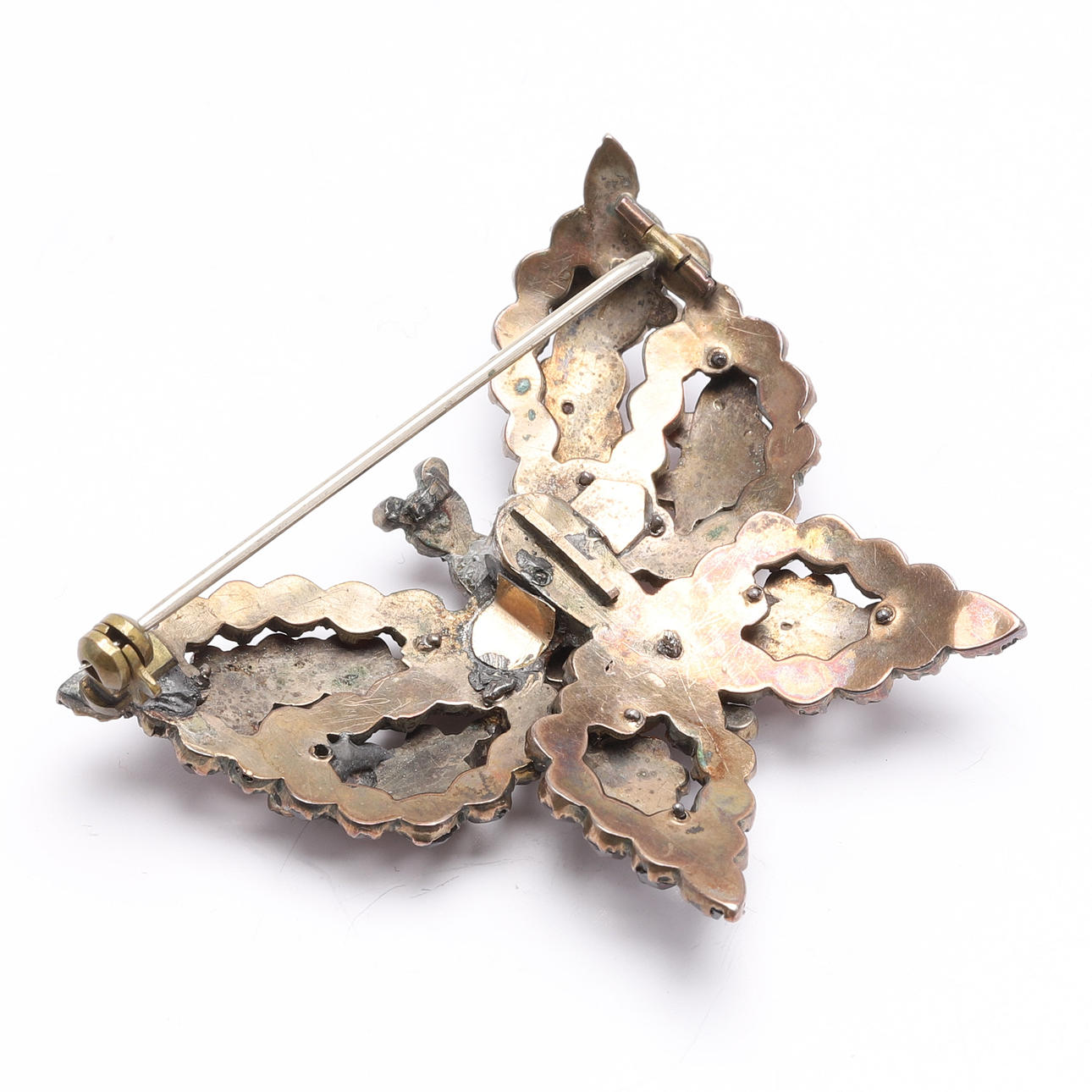 2763489. BROCHE/VÆNDE, granater, foran en sommerfugl.