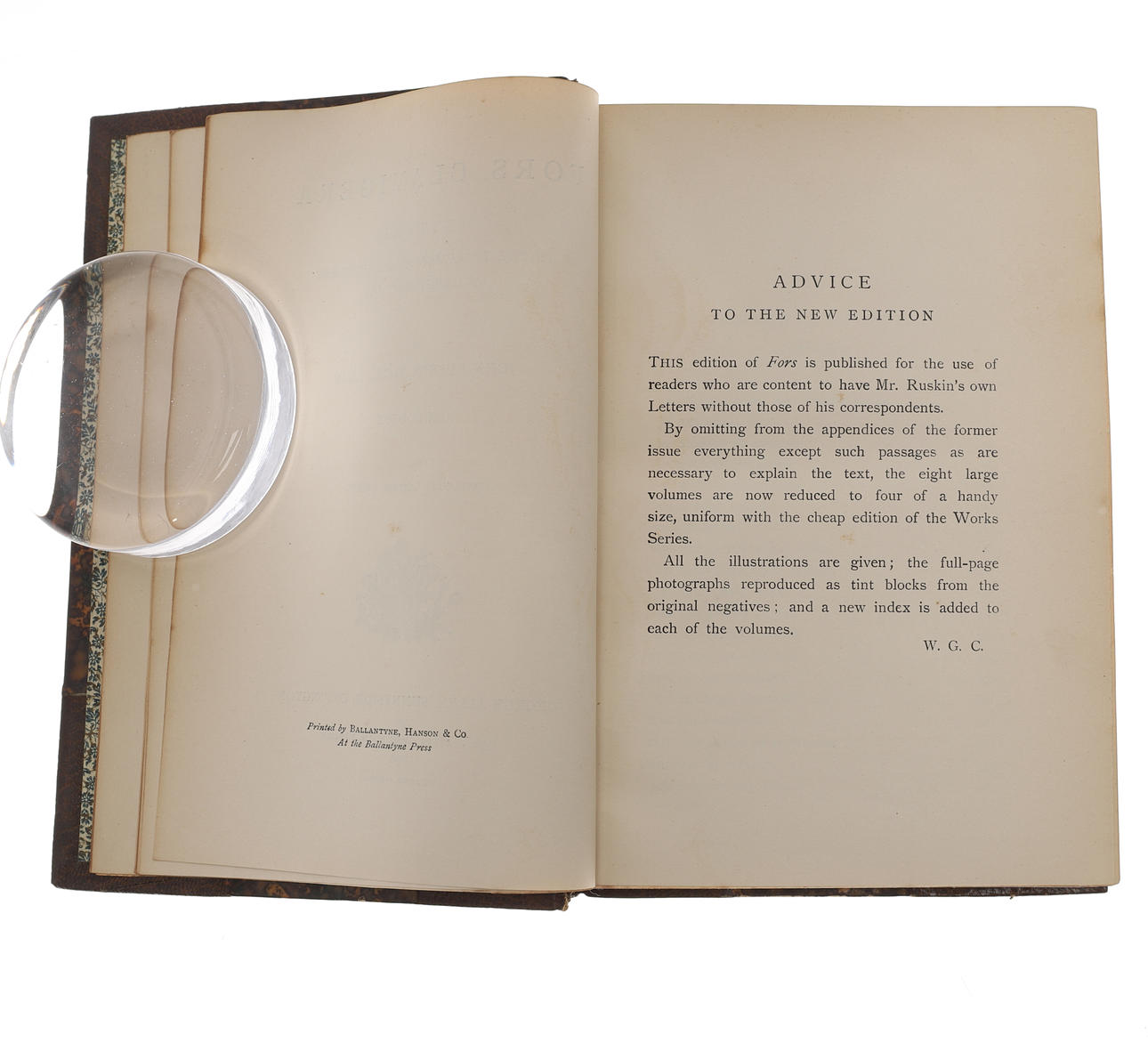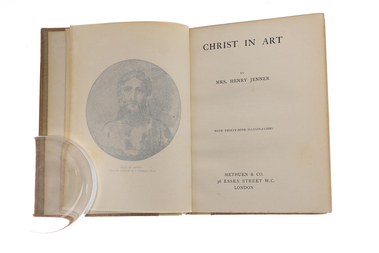 New Edition, London: George Allen, 1896, fine læderbind med marmorplader og blomstrede endepapirer, sammen med Mrs Henry Jenner, Christ in Art, med niogtredive illustrationer, udgivet af Methuen & Co, 1906 (5) Herkomst: The første gang købt af Mrs Mary Drew, (nee Gladstone) i begyndelsen af 1930'erne, disse erstattede det originale sæt af alle Ruskins værker, givet til hende af forfatteren. Den anden givet til Nancy Parish-Lady Paget, fra Maud Gladstone, Olde Tante og Svigerdatter af WEG.