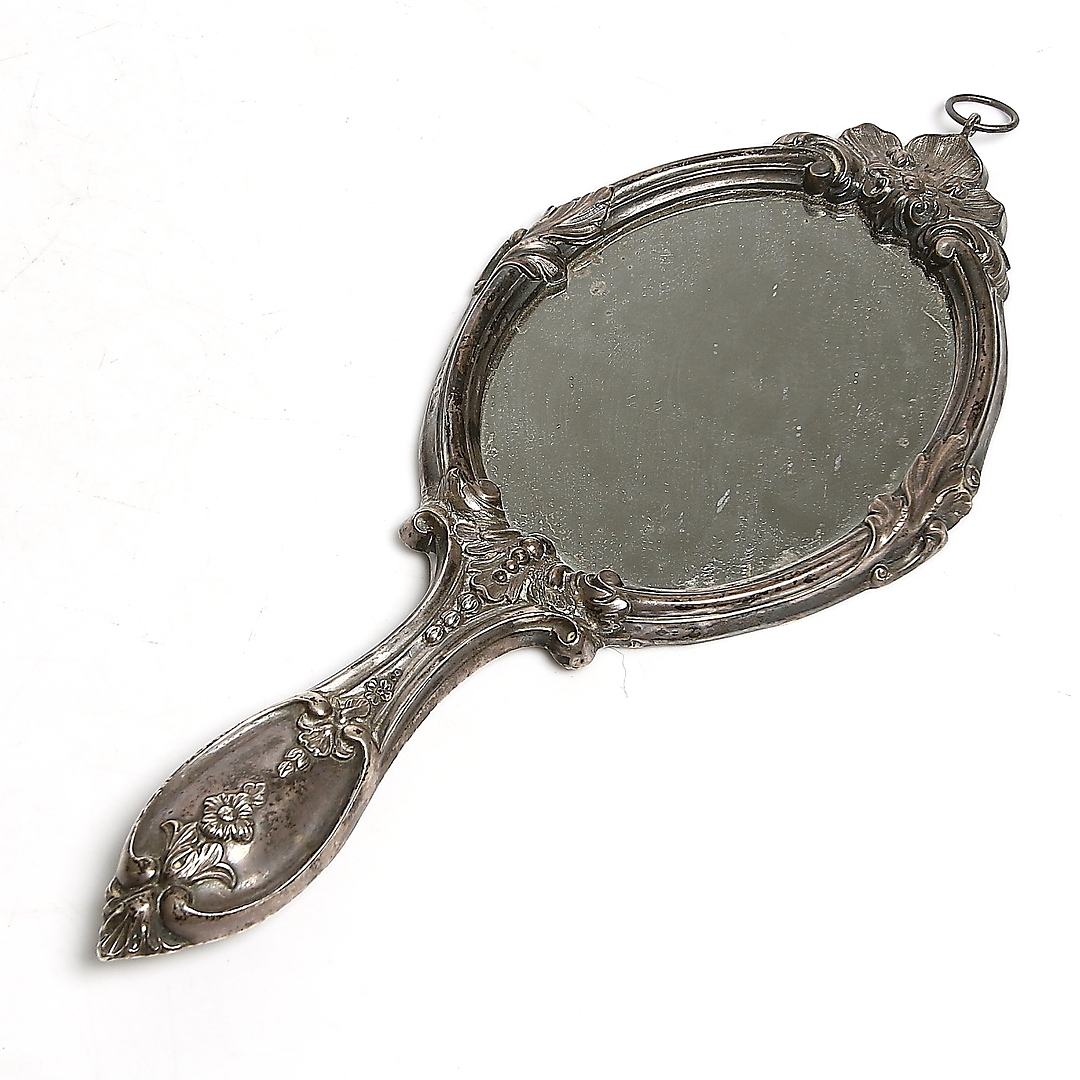 277403. HÅNDSPEJL, sølv, nyrokoko. 1800-tallet.