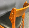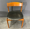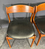 Stel af teaktræ, sæde betrukket med imiteret læder.