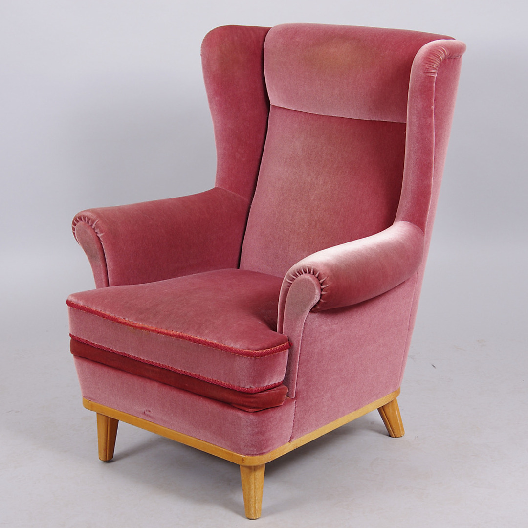 278911. LÆNESTOL, rød plys.
