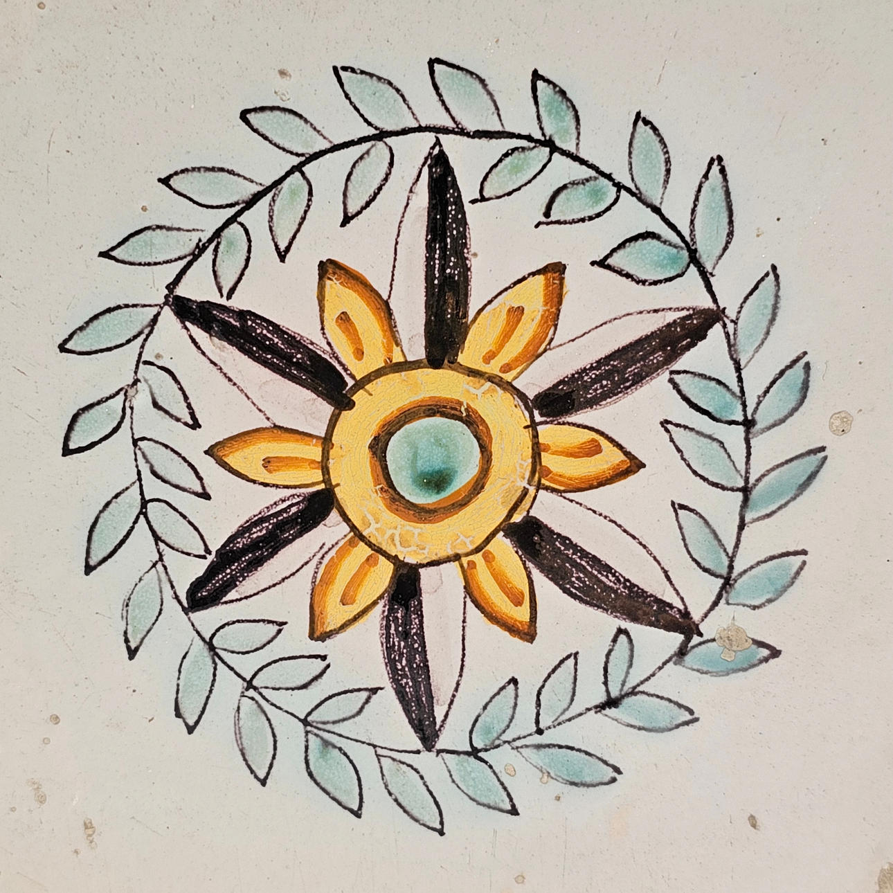 2793480. KATALANSK KERAMISK FLIS HÅNDMALET INDRAMME.