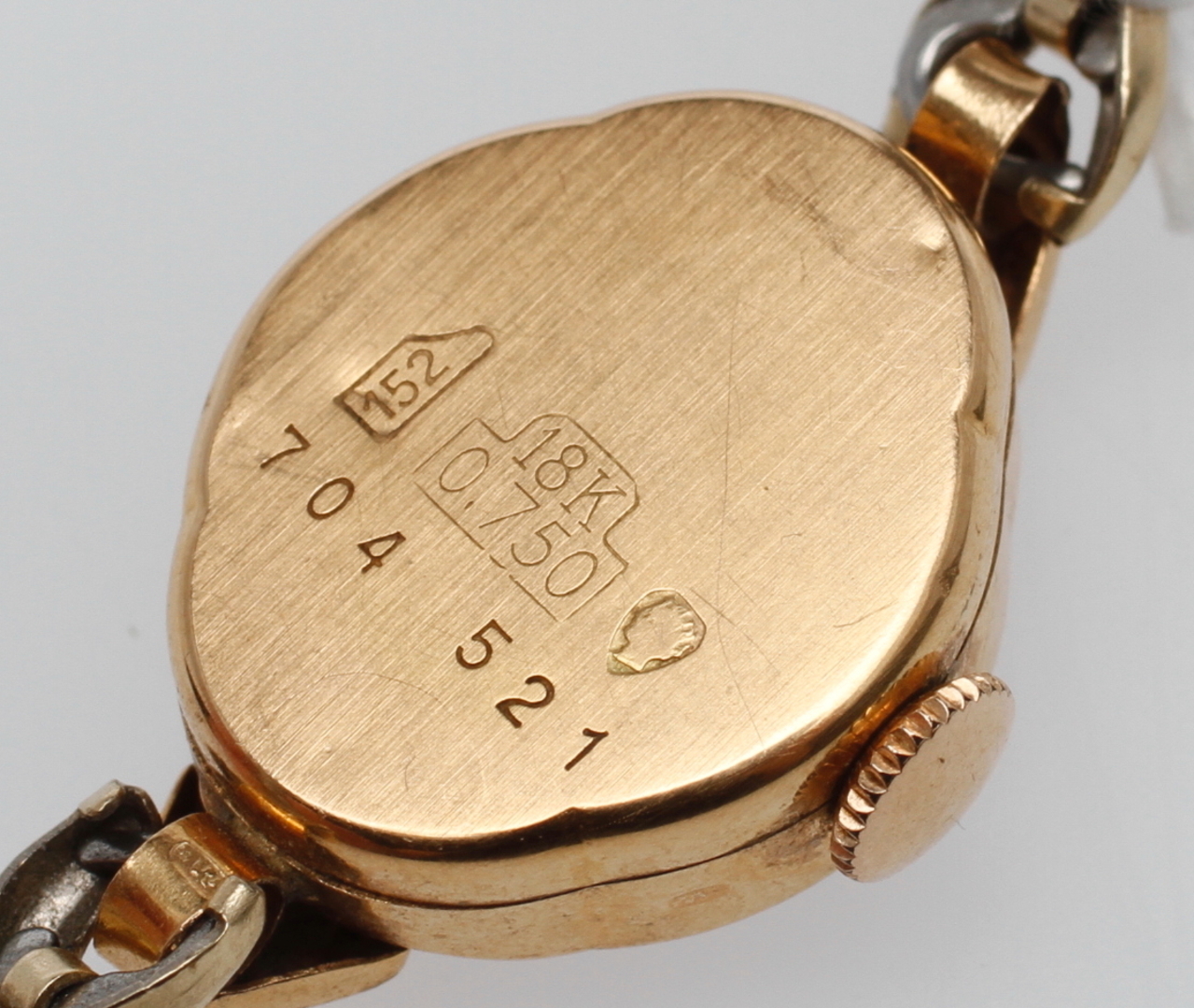 27948. DAME Armbåndsur, Plosy, 18 karat guld.