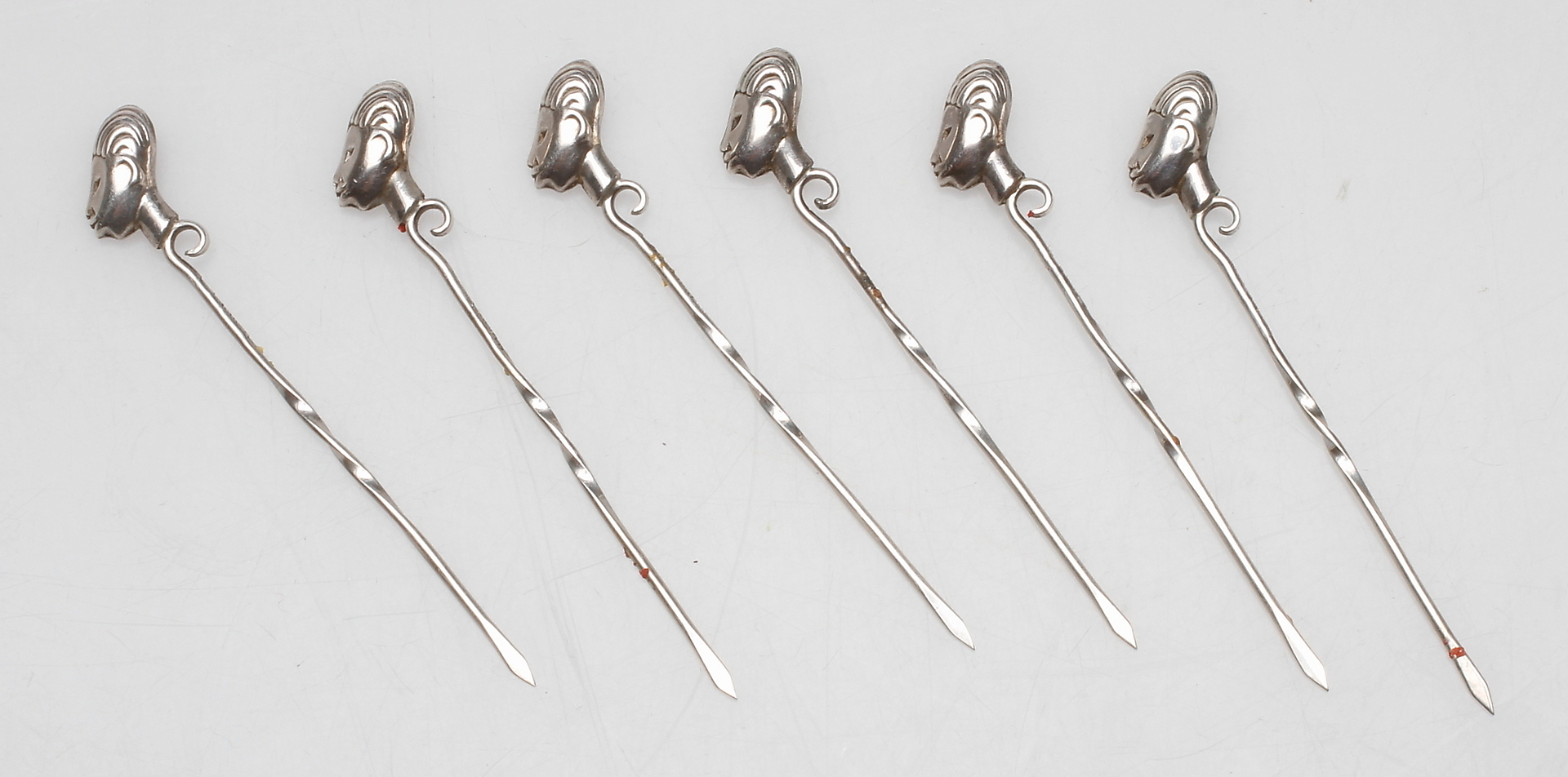 279573. COCKTAIL STICKS, 6 stk, sølv, 1900-tallet.