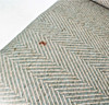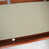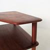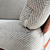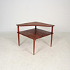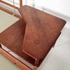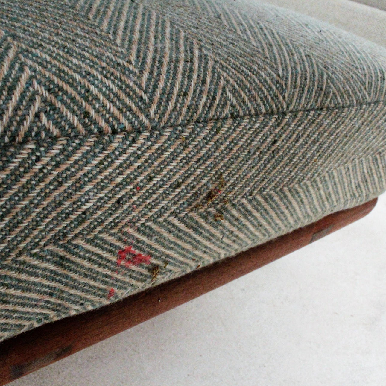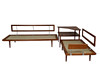 Materiale: teaktræ, fladt tekstilstof, blandet uldstof Mål på tresædet: H: 85 cm, B: 190 cm, D: 78 cm Mål på tosædet: H: 85 cm, B: 140 cm, D : 78 cm Mål på bordet: H: 63 cm, B: 77 cm, D: 77 cm.