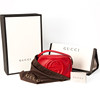 Crossbody model, rødt læder med frontmonogram GG, guldfarvede metaldetaljer, læderkvast, justerbar skulderrem. Indvendig foret med beige kanvas, indvendig to rum. Mærket "GUCCI made in italy", Gucci-mærke med nr.: AO18388774. Samt købskvittering, Dustbag.