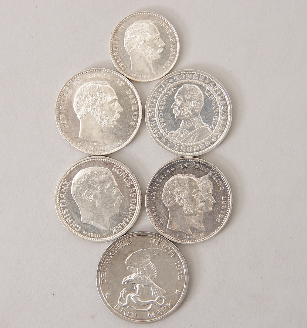 280287. MØNT 6 styk, Tyskland / Danmark.