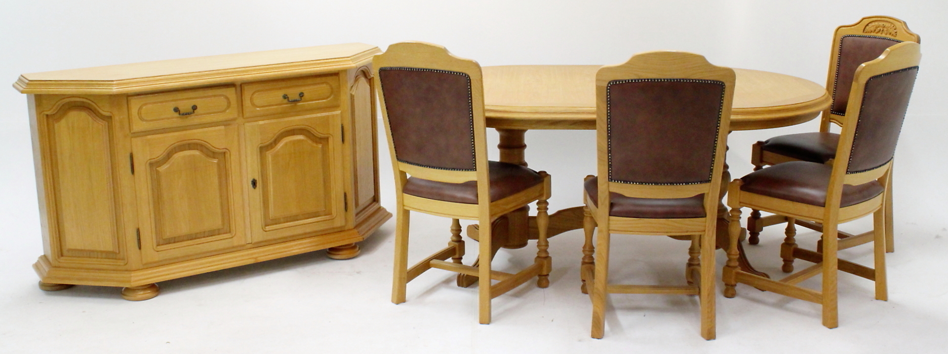 280380. SPISEMØBLER, bord 4 stole sidebord, bog.