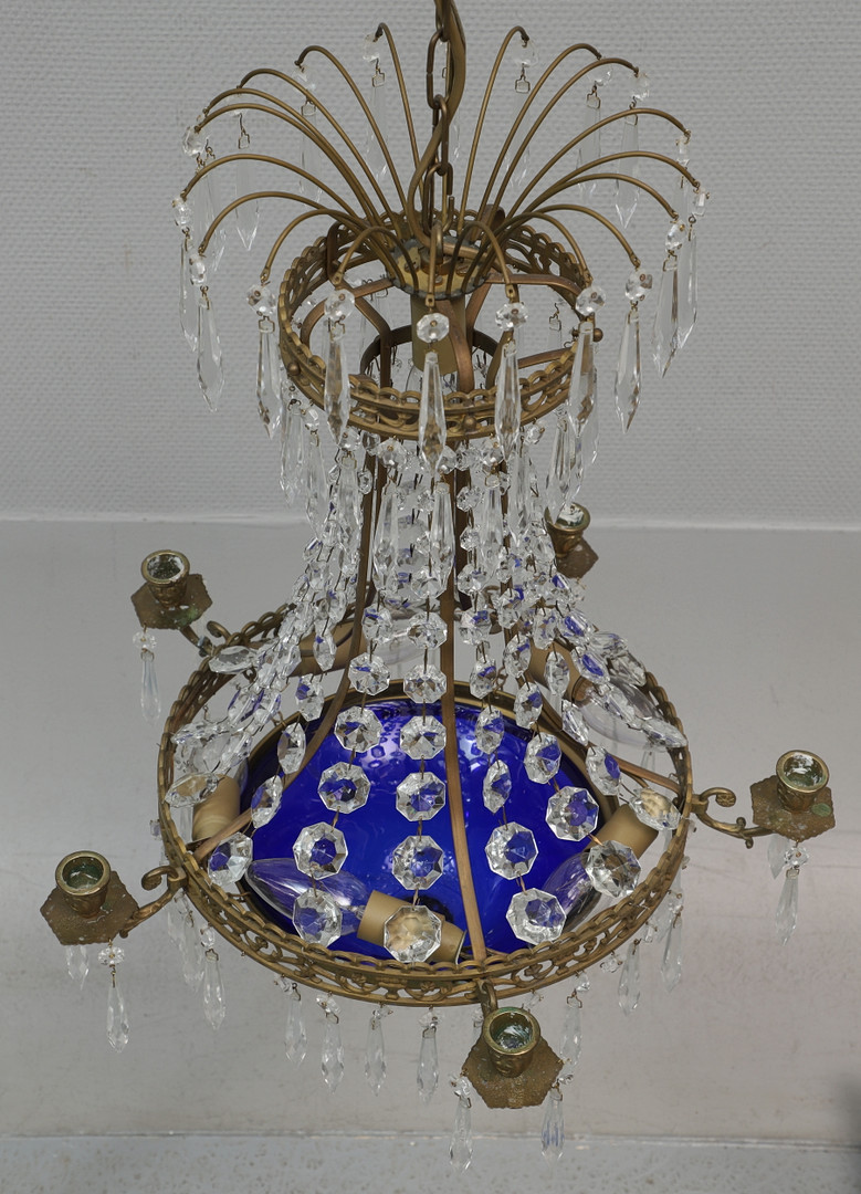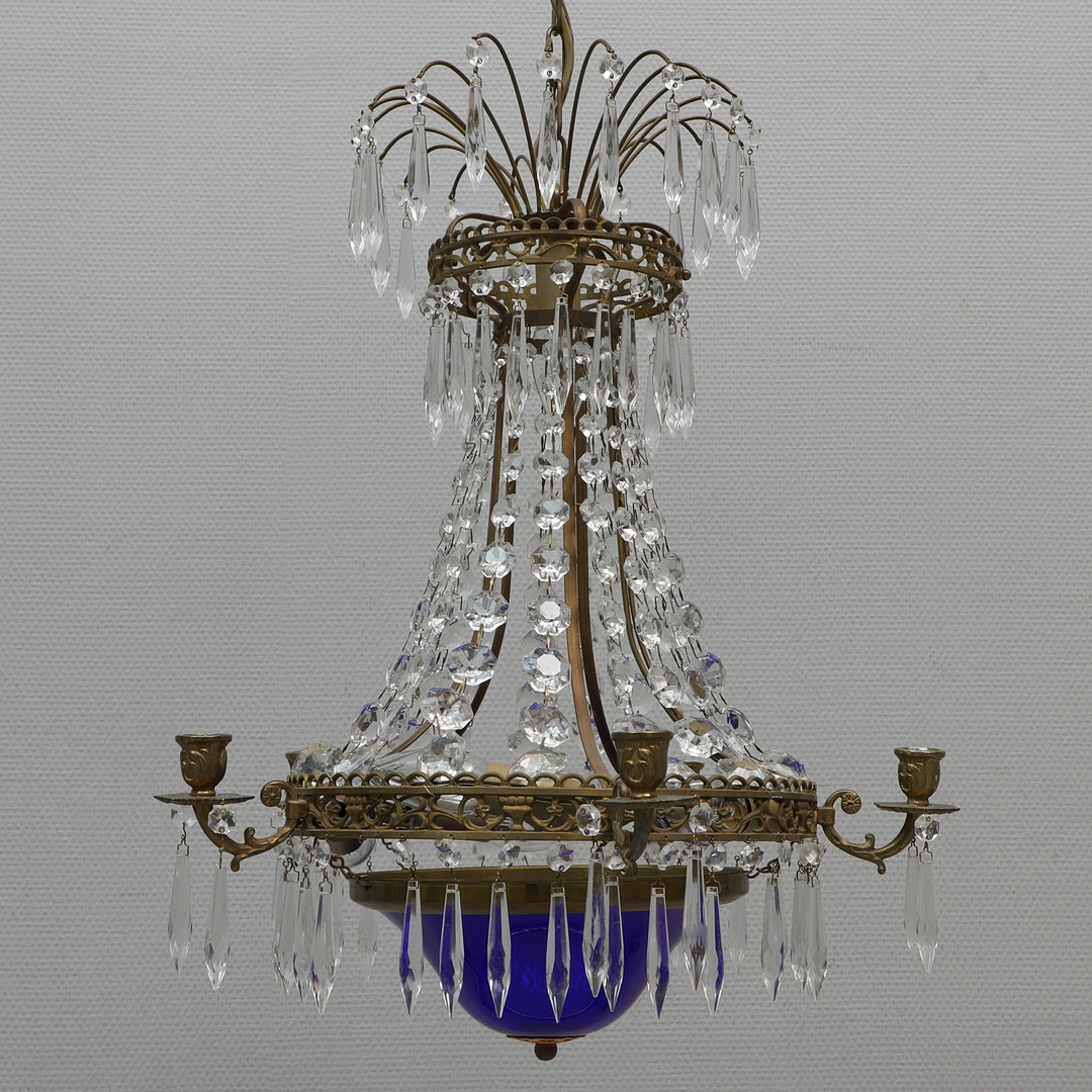 2805994. KRYSTALKRONE, blåt glas, 20. århundrede.