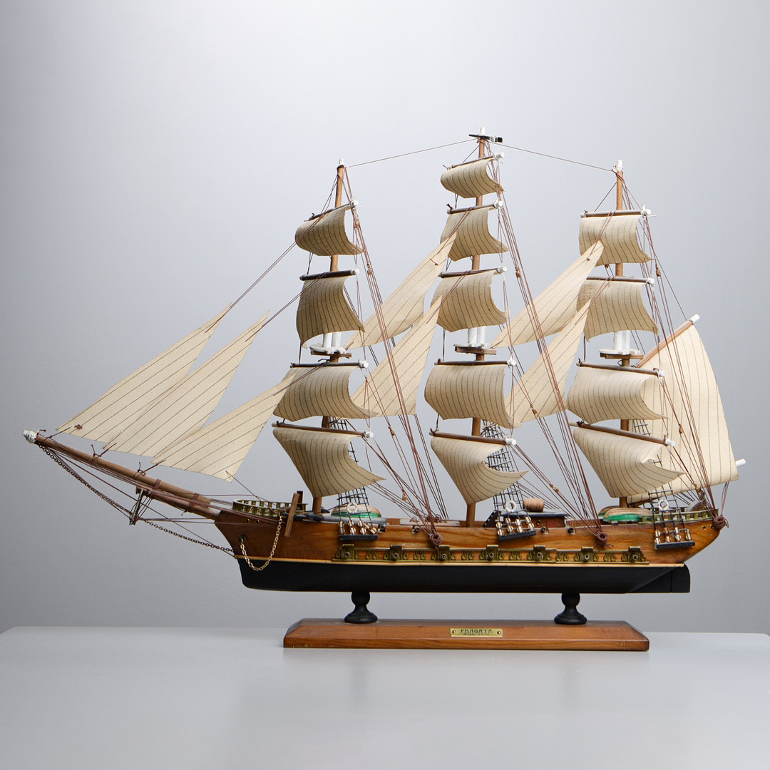 2806419. SKIBSMODEL/MODEL SKIB, træ og tekstil, 1900-tallet.
