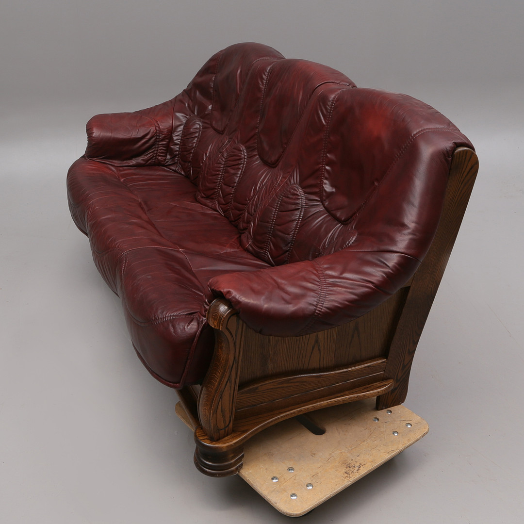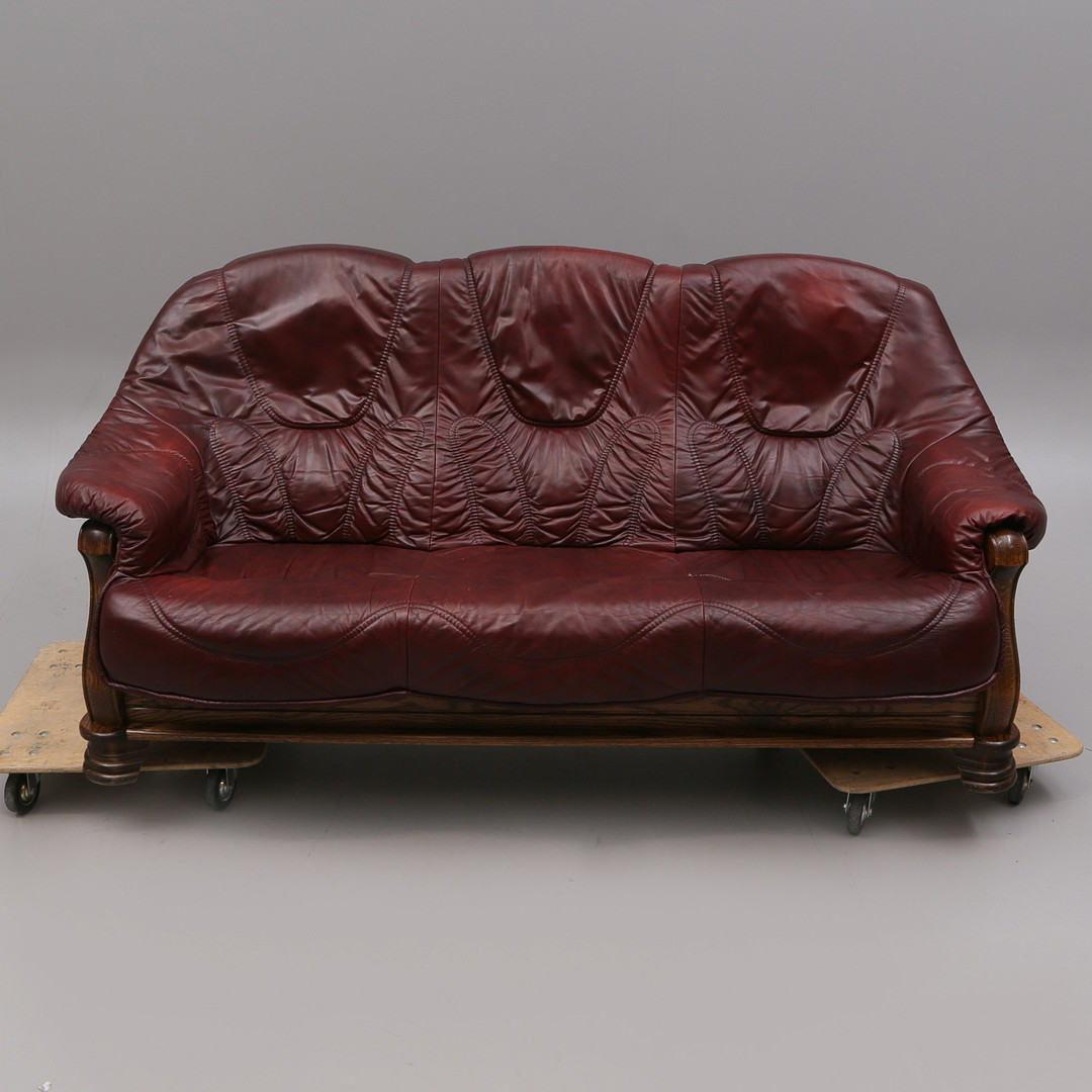2808482. SOFA, læder/træ, rød, 1900-tallet.