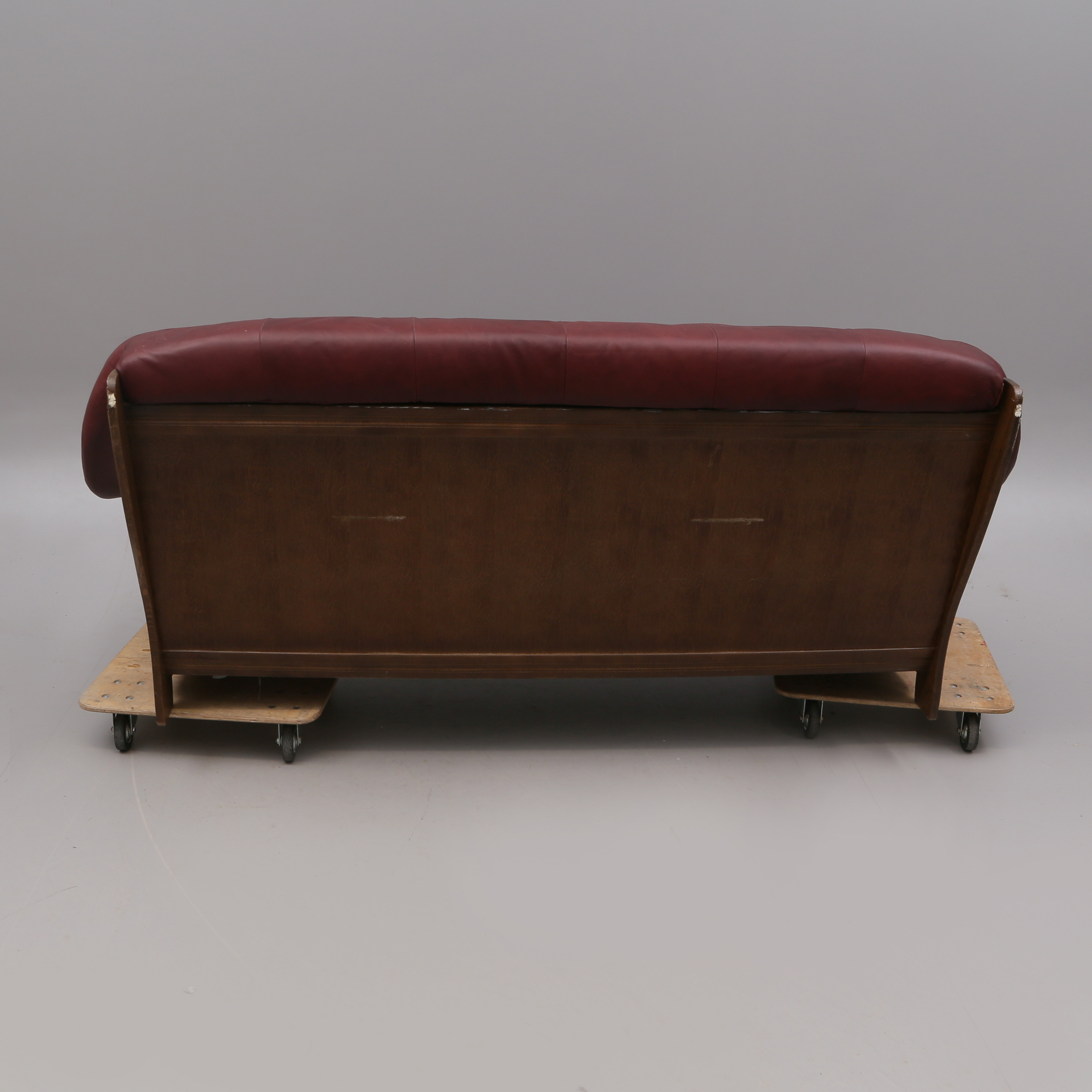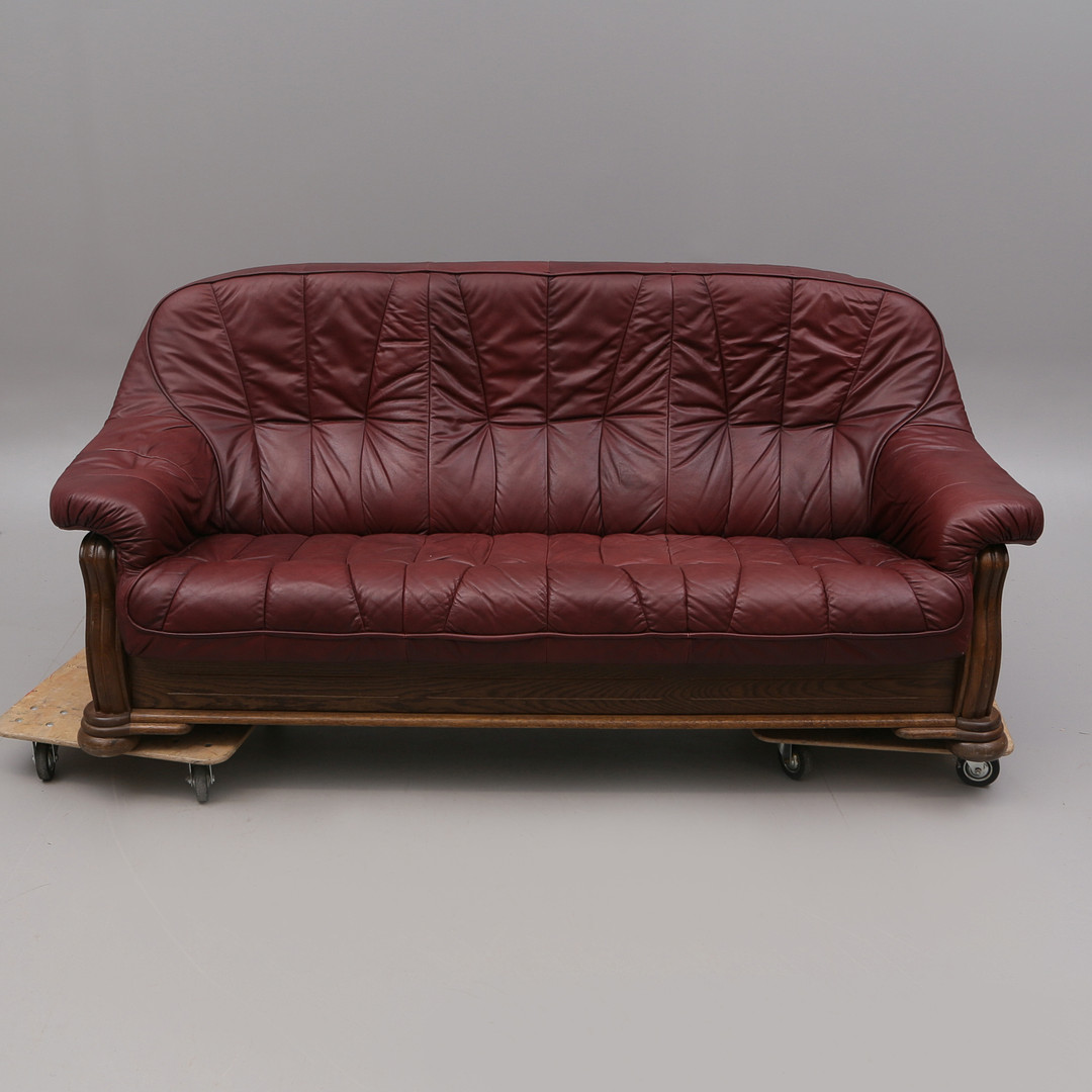 2808490. SOFA, læder/træ, rød, 1900-tallet.