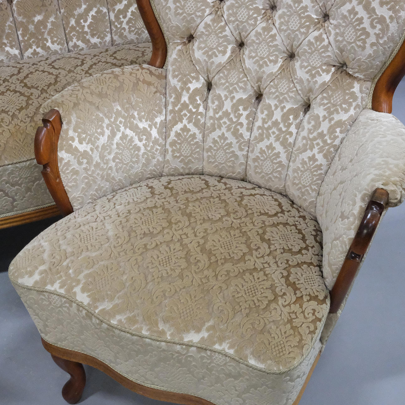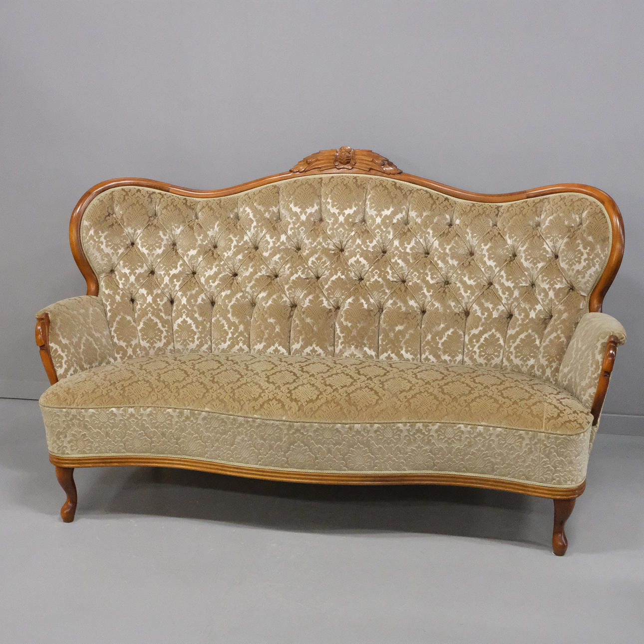 Dybsyet plys med reliefdekoration, anden halvdel af det 20. århundrede, sofalængde 176, højde 100 cm.
