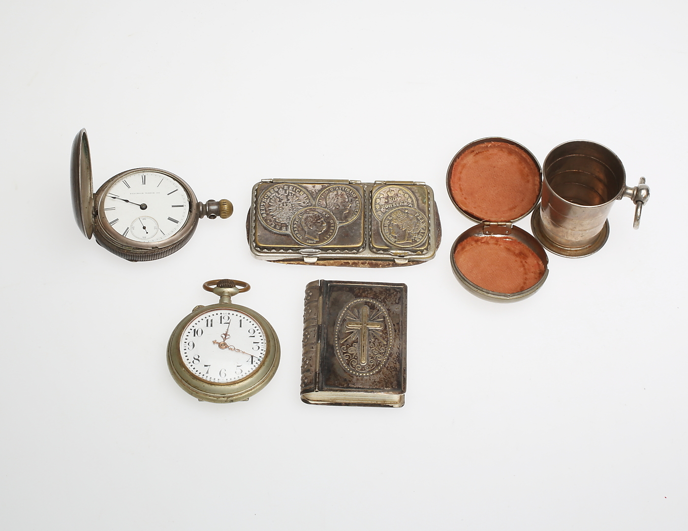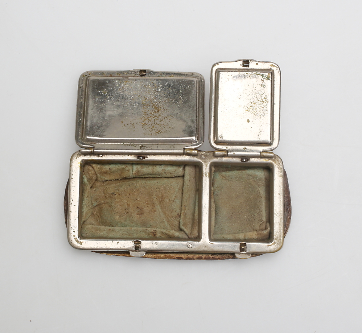 280889. URE og PORTMONNÄ, 5 dele, nysølv.