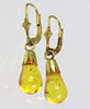 Helt i gult guld 585 guldbelagte par øreringe er lavet af sølv 925 og stemplet i overensstemmelse hermed. Med et ravdråbe på ca. 7 mm Ø i blomsterstand, fleksibelt ophængt i en hængslet løftestang med vifteende. længde ca. 18 mm, slidlængde med løftestang ca. 28 mm, vægt ca. 1,7 gram.