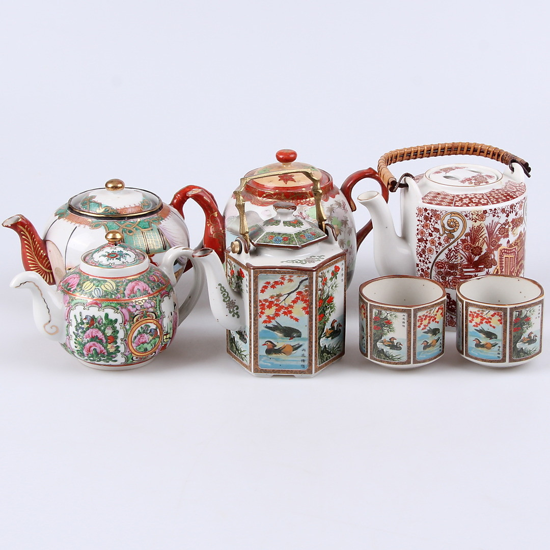 281118. Tekander og tekopper, 7 dele, porcelæn, Japan, 20. århundrede.