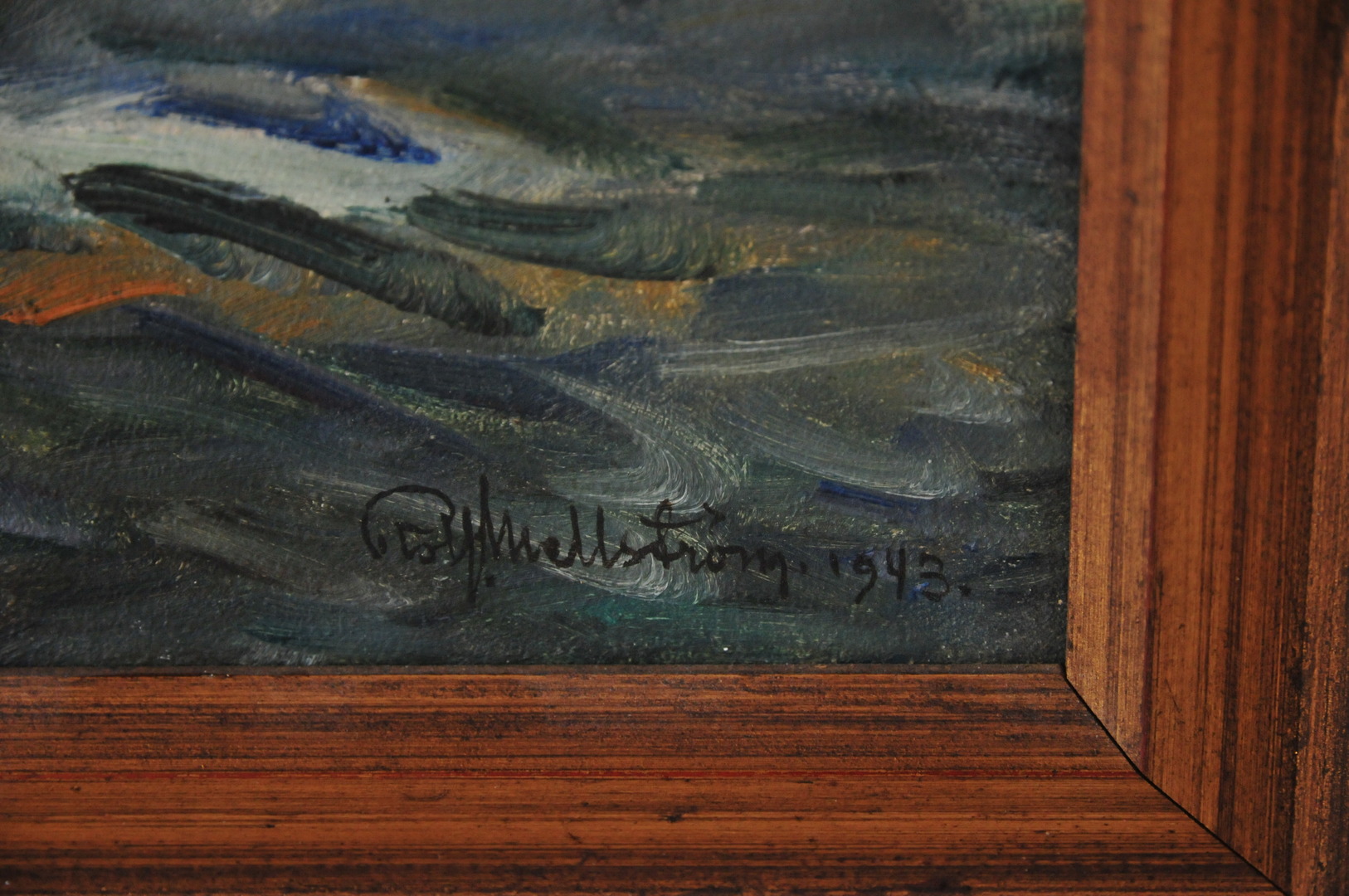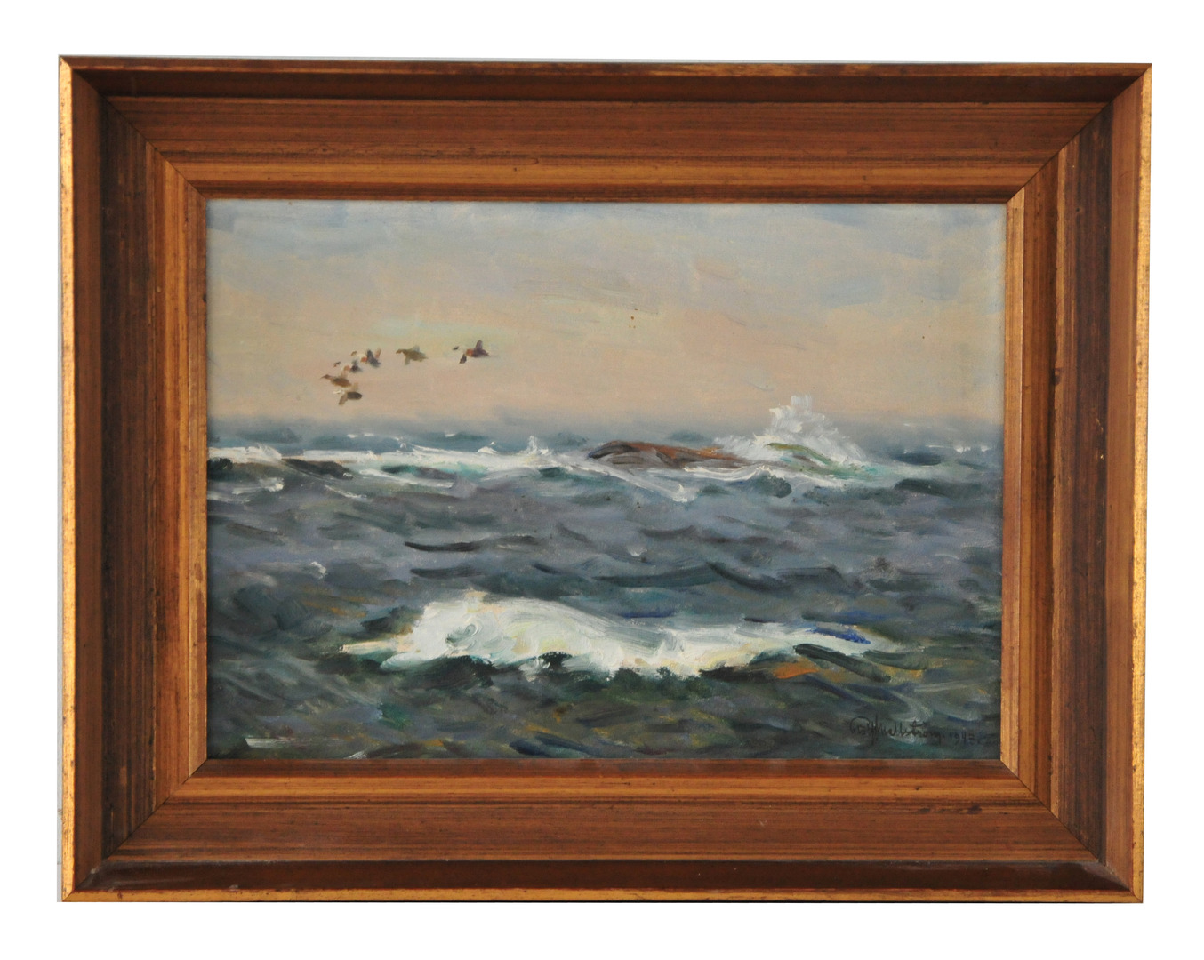 28123. ROLF MELLSTRÖM. "Ejderfugle". Olie på Panel, signeret.