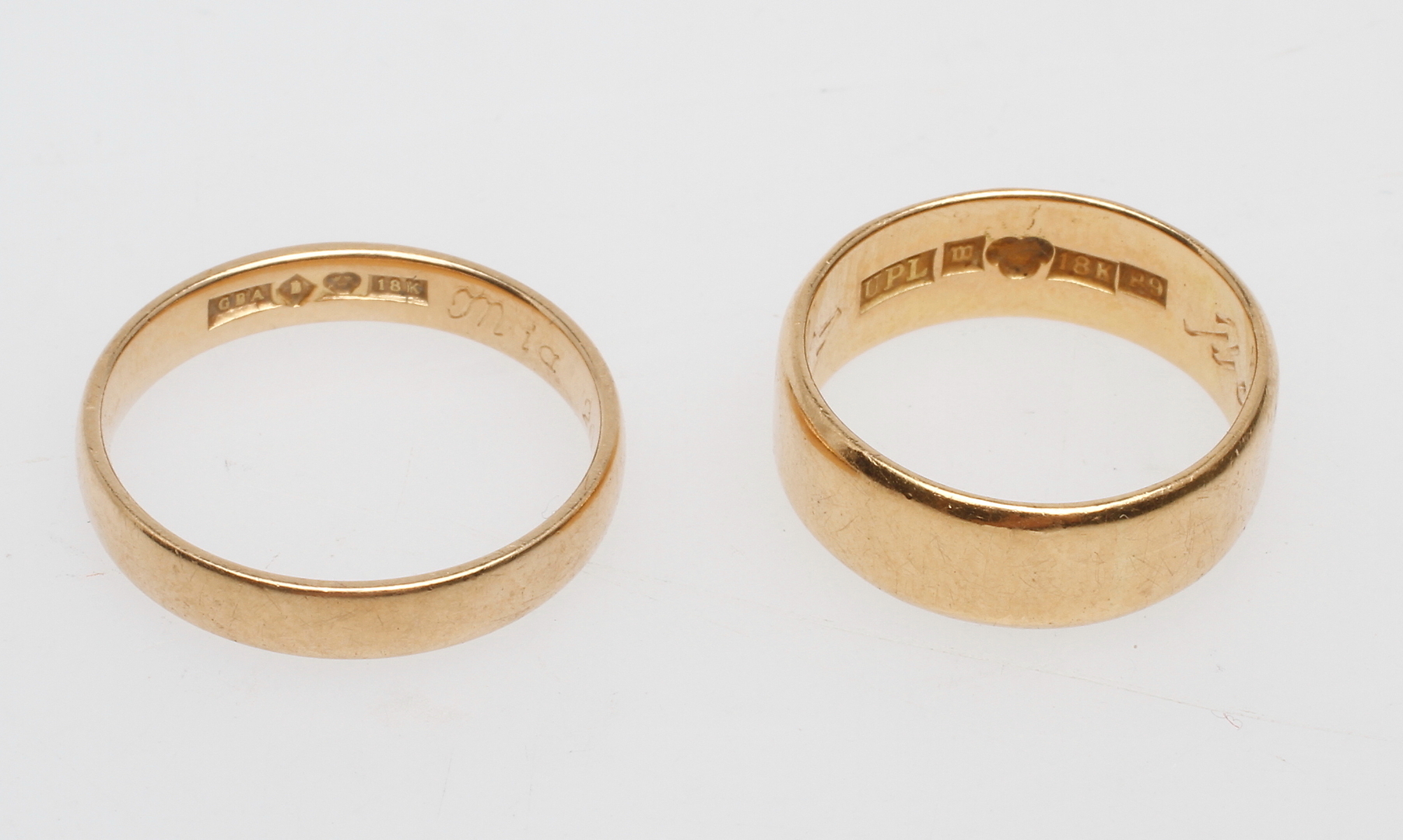 281270. RINGE, 2 stk, 18k guld, vægt ca. 8,4 gr.