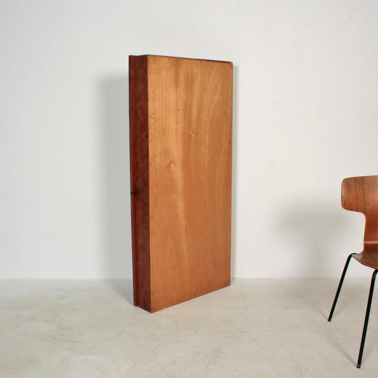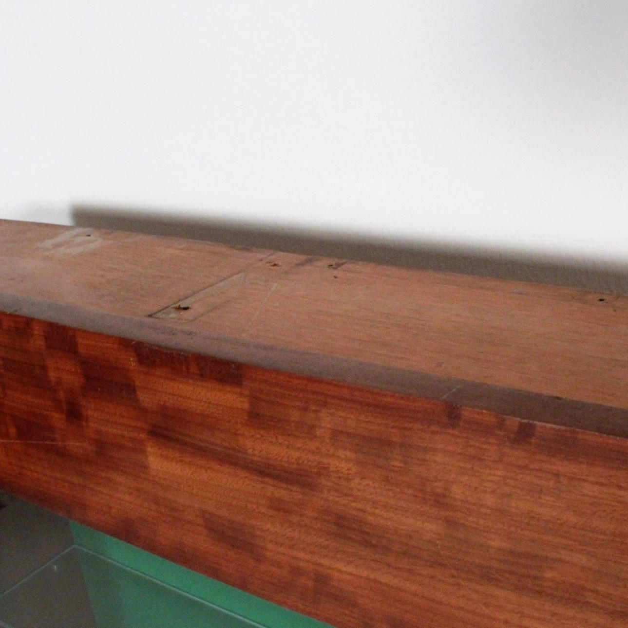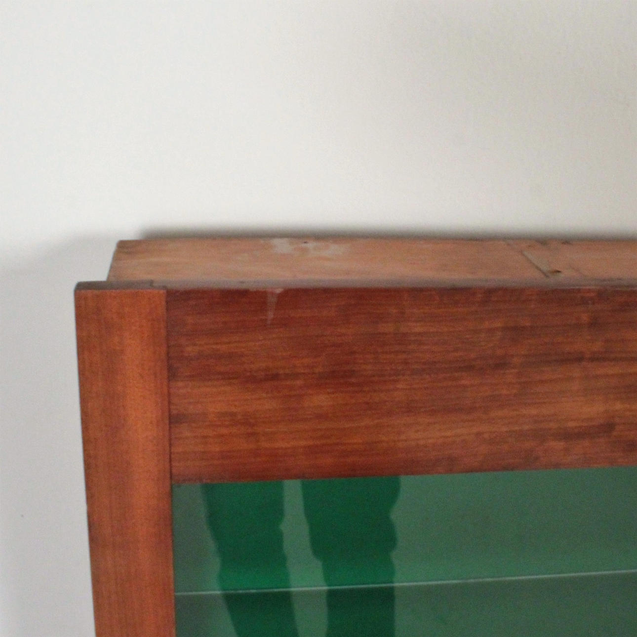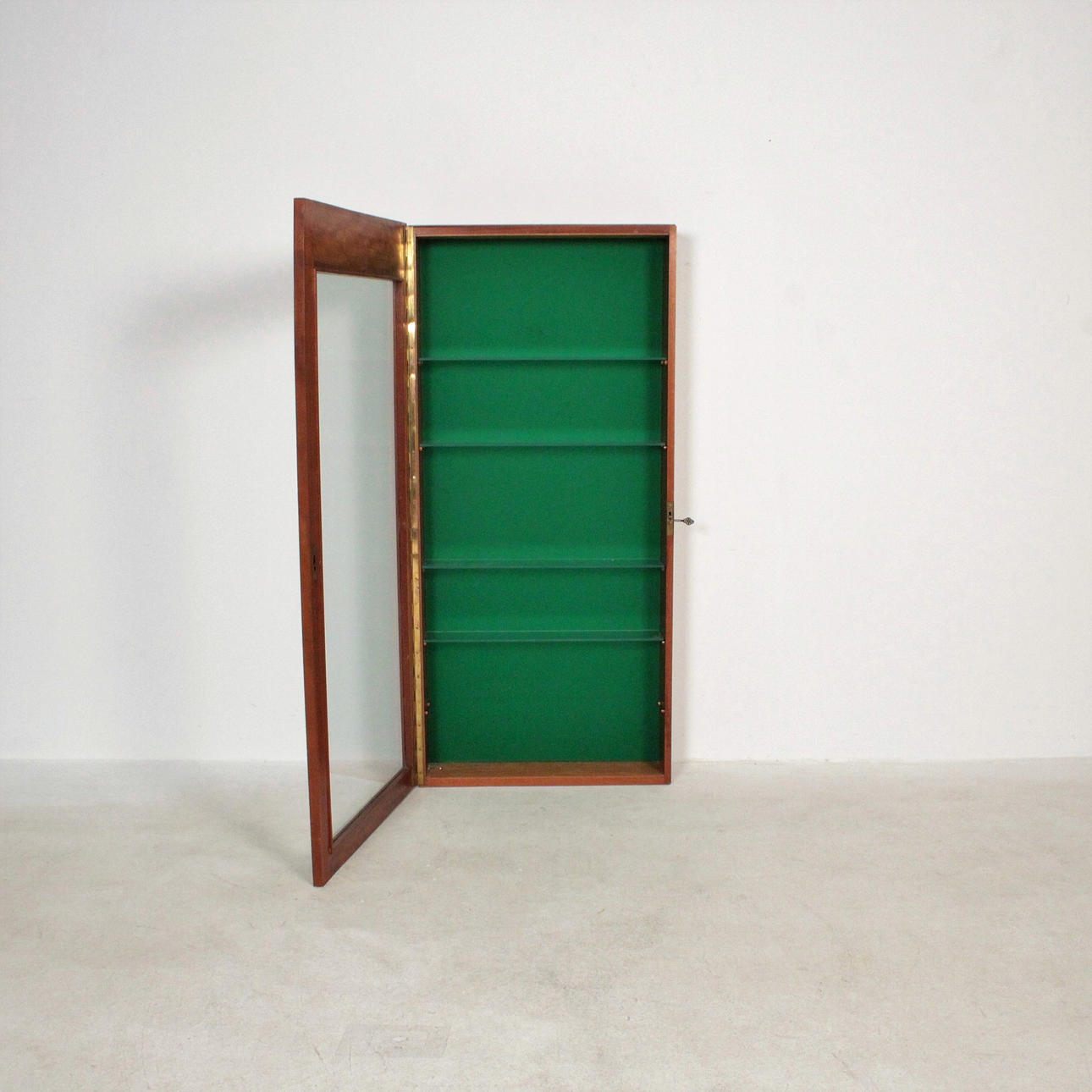 Materiale: teak, glas, grøn filt tekst Mål: H: 135 cm, B: 60 cm, D: 14,5 cm.