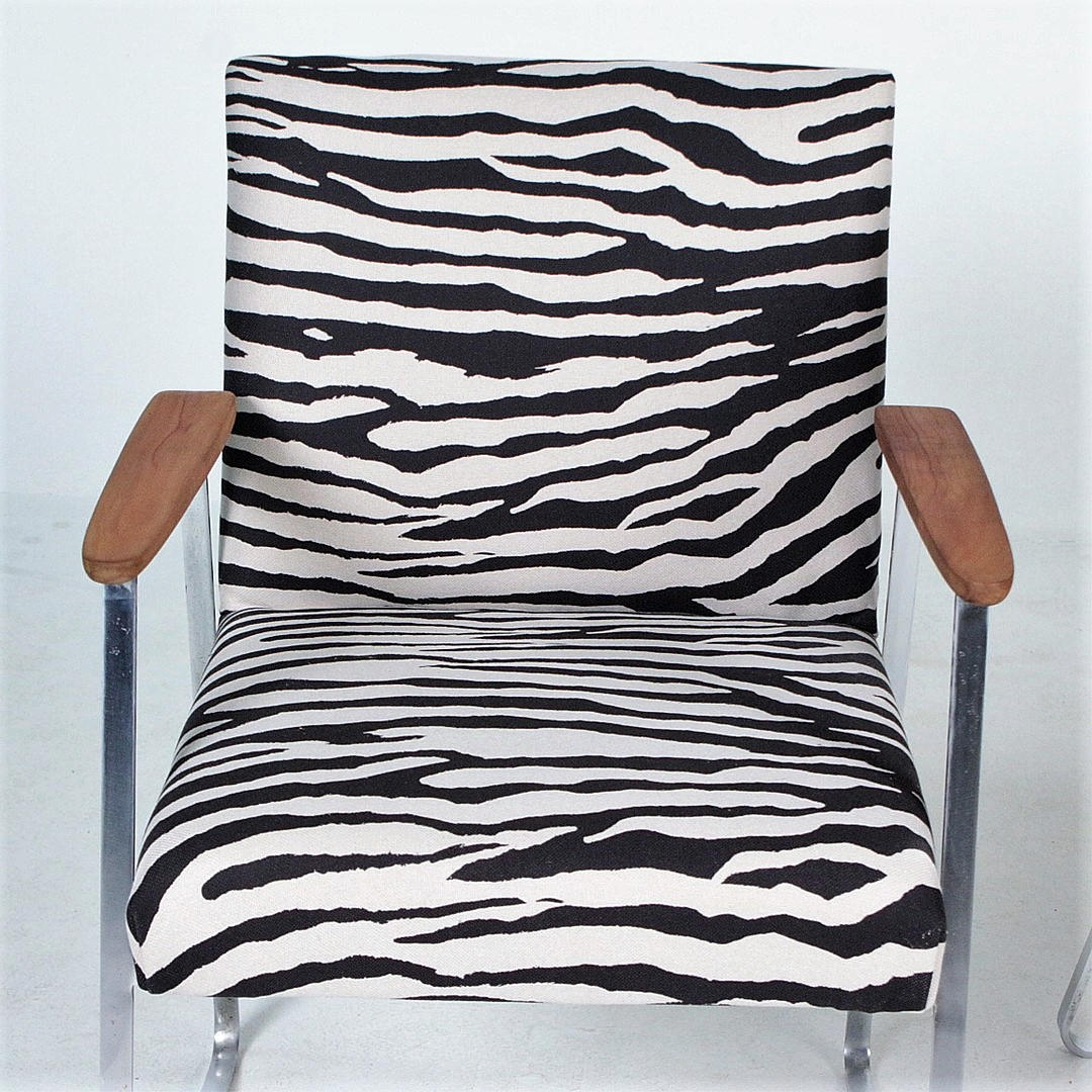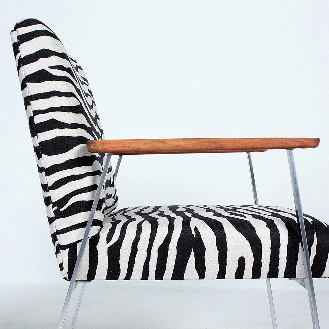 Materiale: rustfrit stål, fladt tekstilstof i zebraskindslook. Teak Mål: H. 80 cm, B. 57 cm, D. 57 cm.