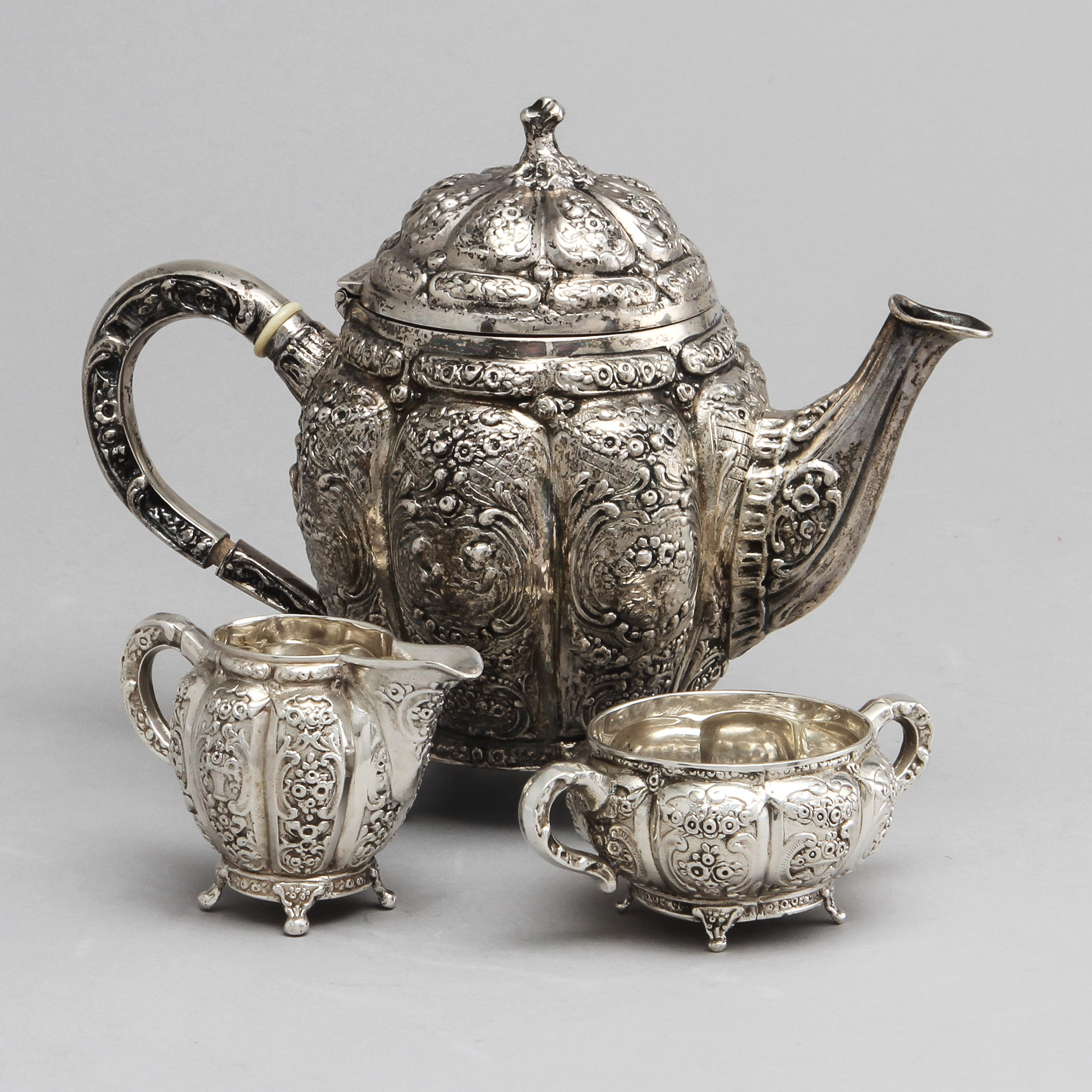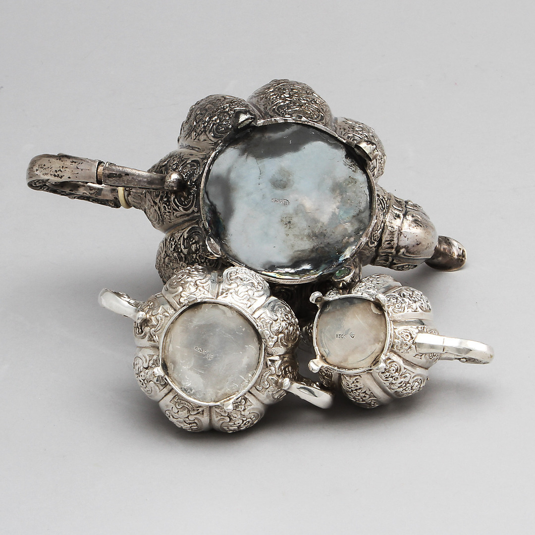 281948. KAFFESERVICE, sølv, 3 dele, vægt ca. 1640 gram.