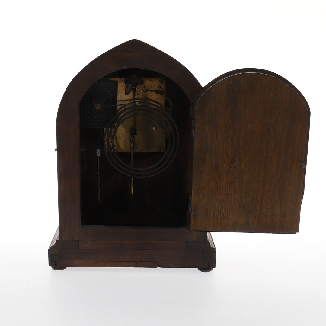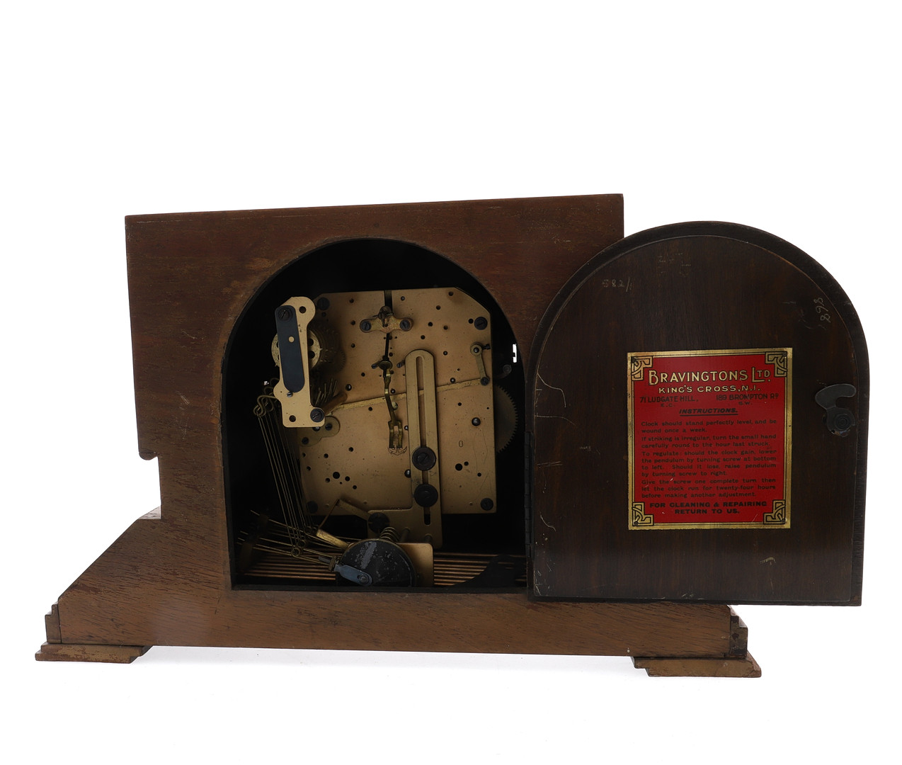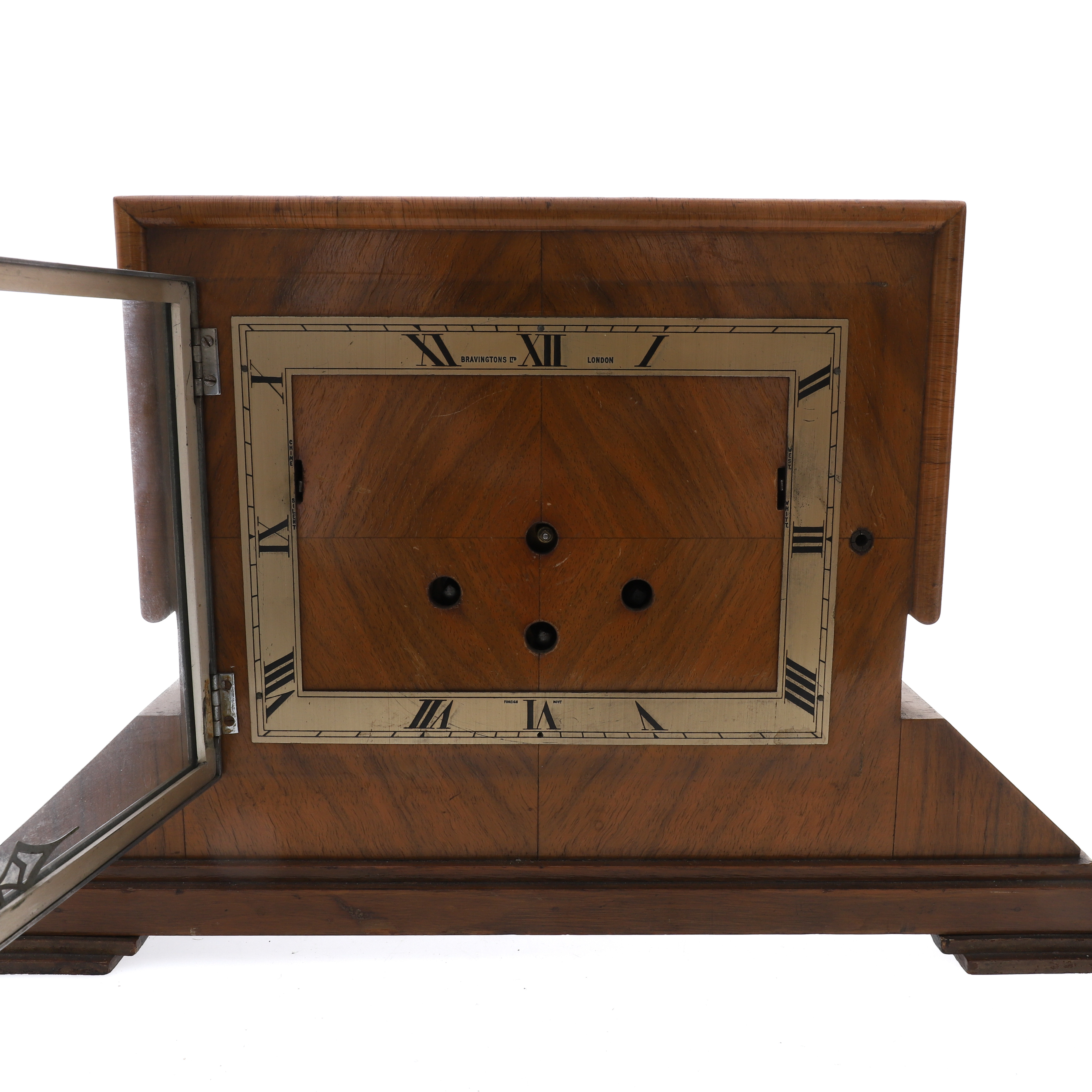 2820076. ET ART DECO VALNØDDE CASERT MANTELUR, BRAVINGTONS LTD.