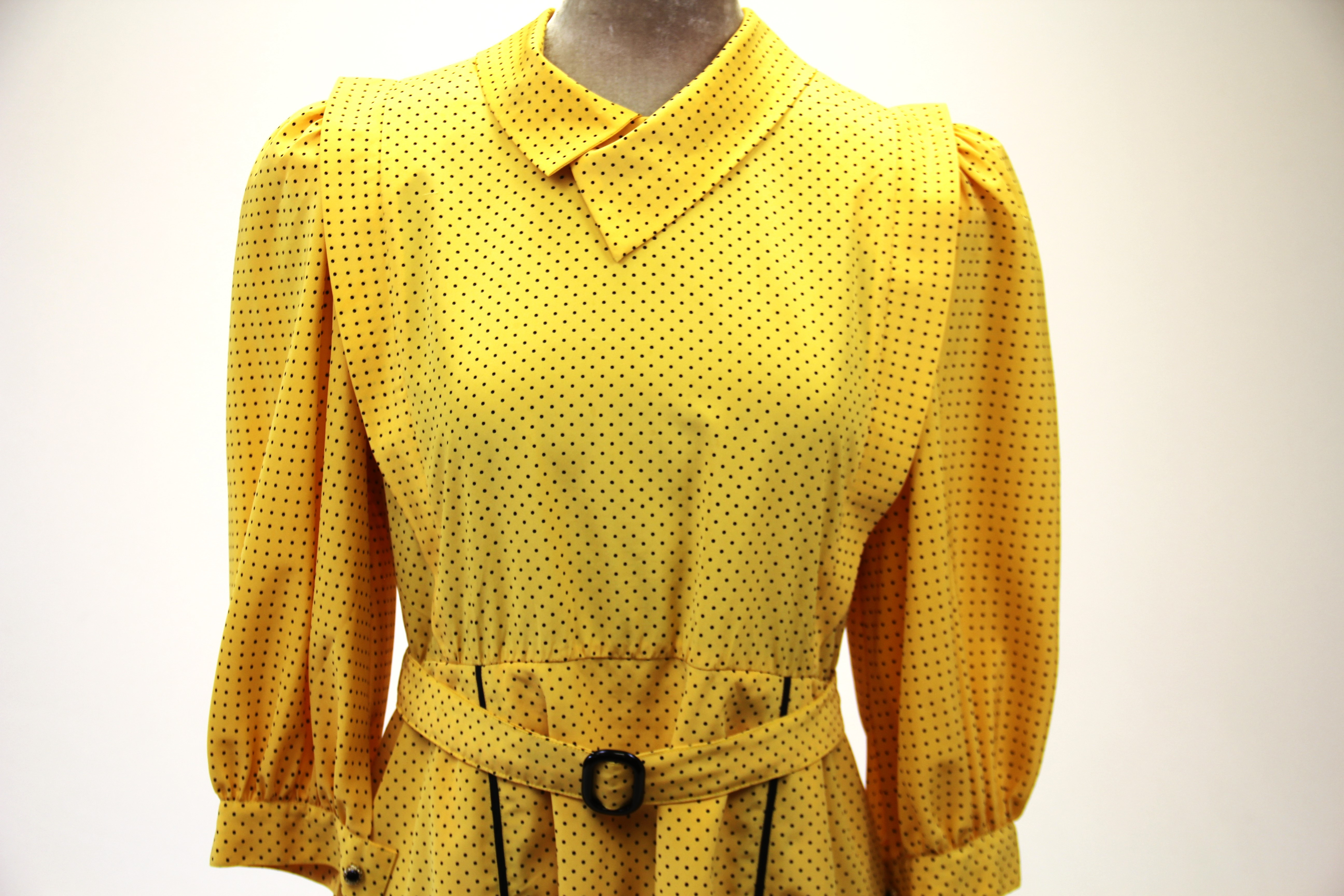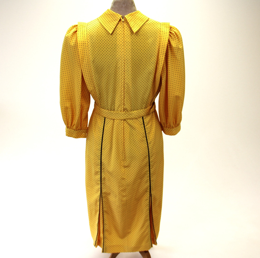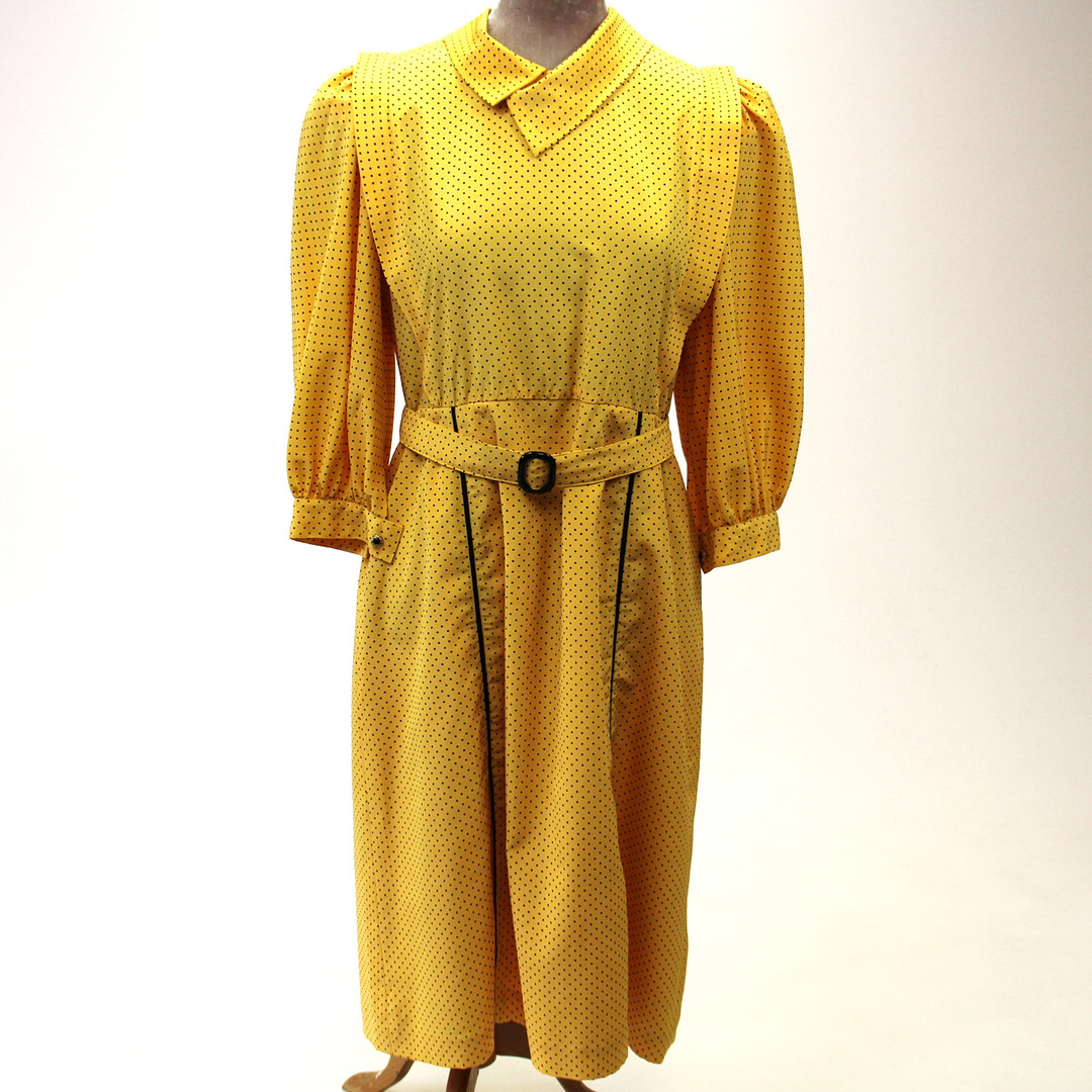 2821157. SORT & GUL POLKA-PRIKKET KJOLE.