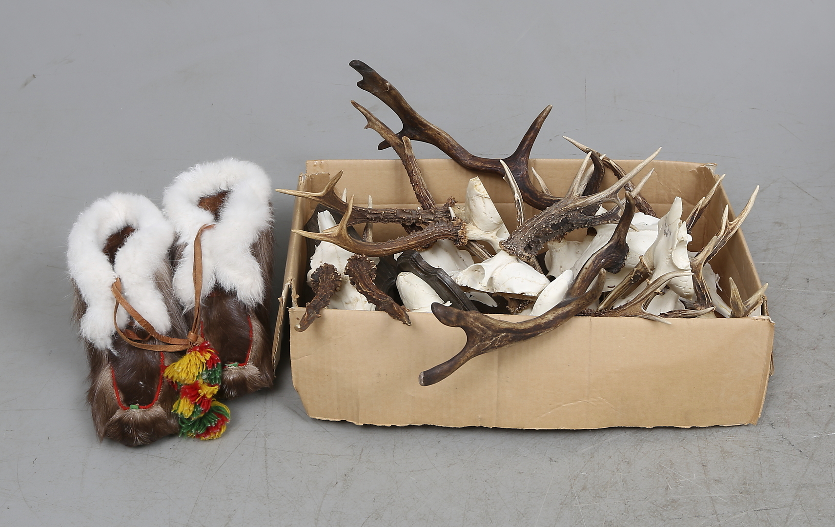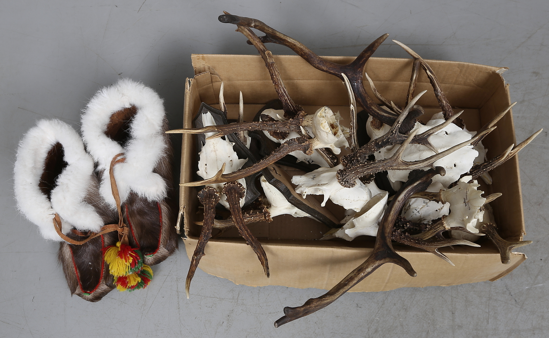282143. JAGTROFÆER og SAMME SKO, et par.