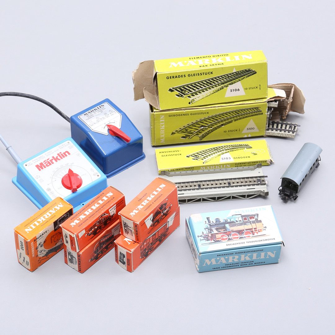 2821675. MÄRKLIN, modeljernbane. Togdele, skinner og transformere.