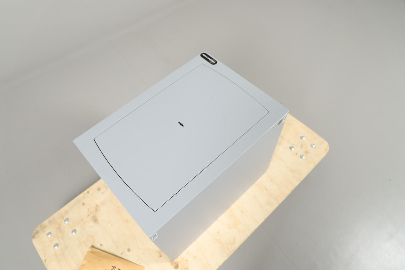 Et lille pengeskab i metal fra Securikey, med to pengeskabsnøgler og gulvbolte. 53 cm høj, 37 cm i diameter.