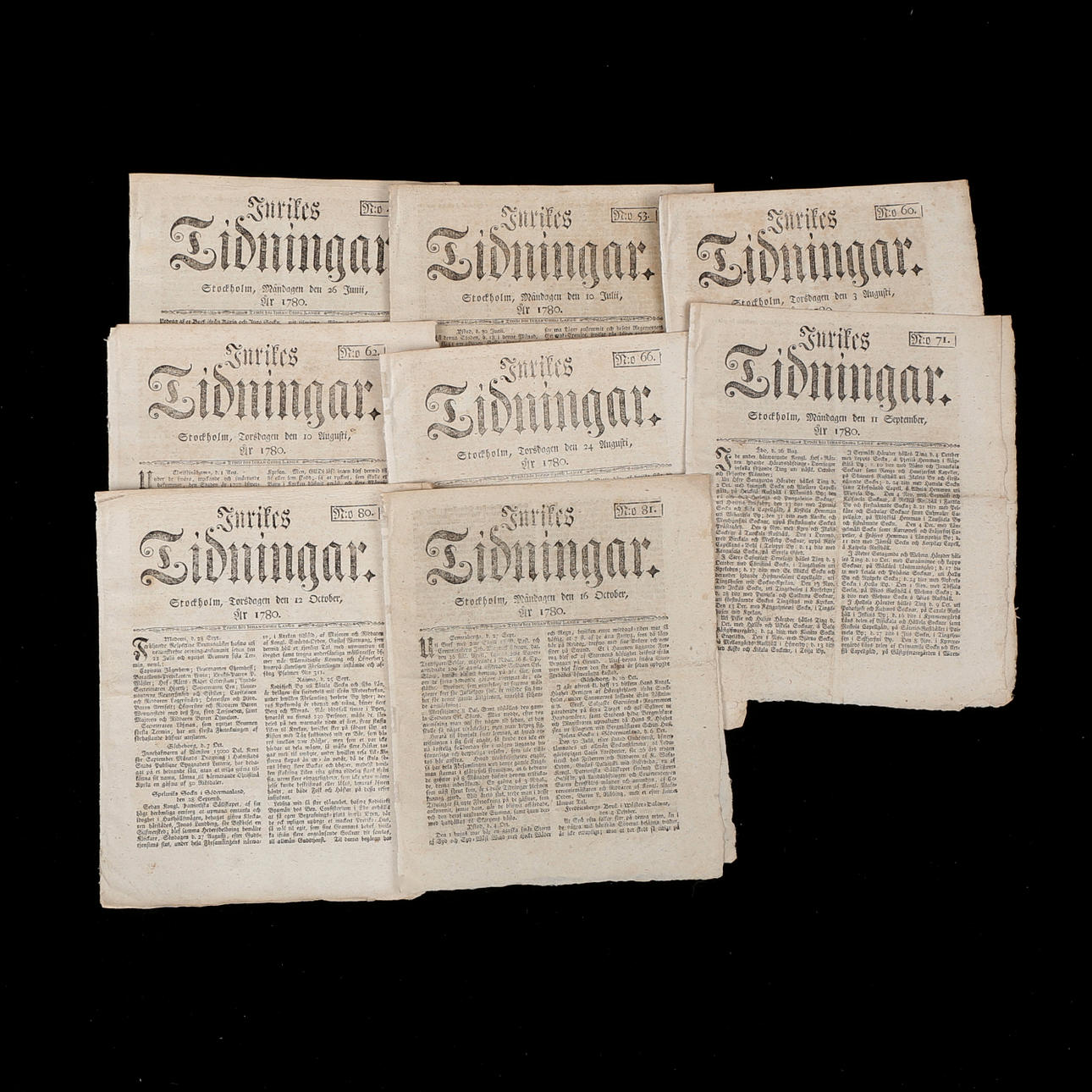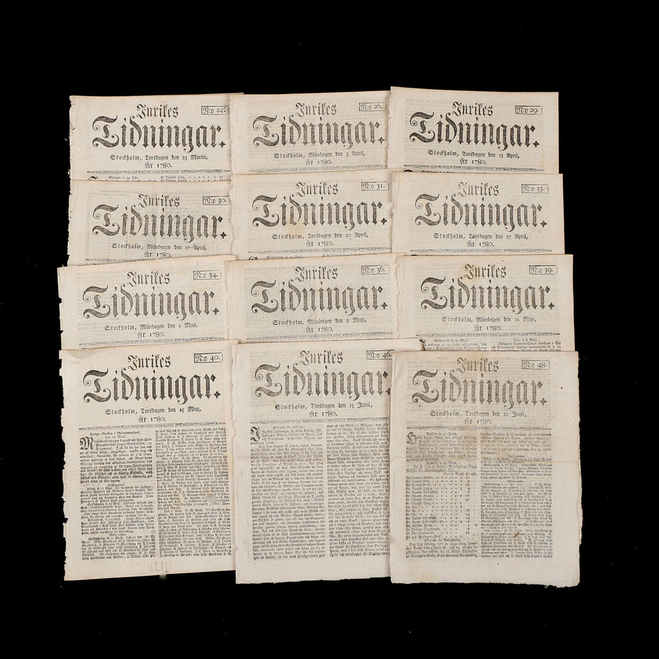 INRIKES AVISER, dagblade, 22 stk., 1780.