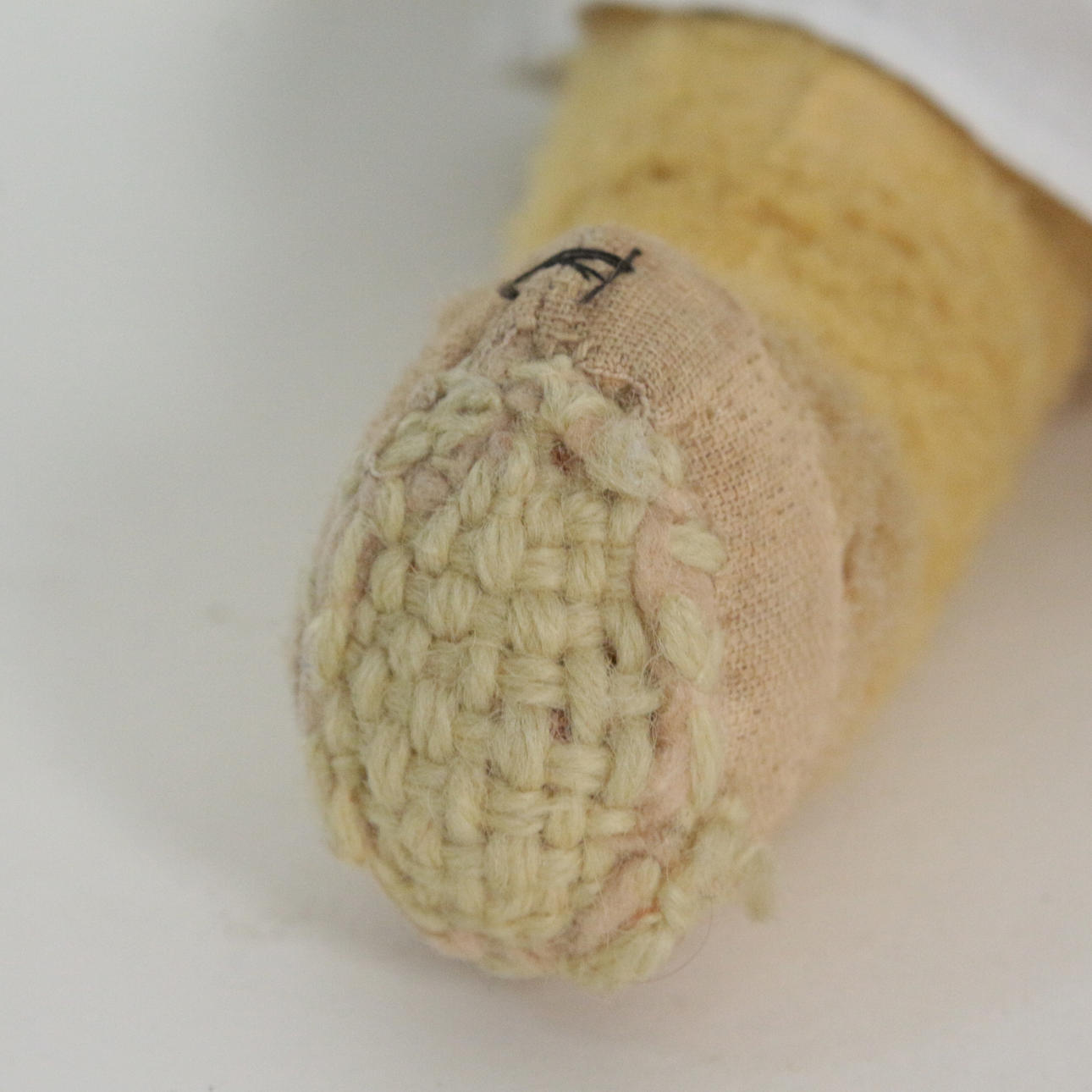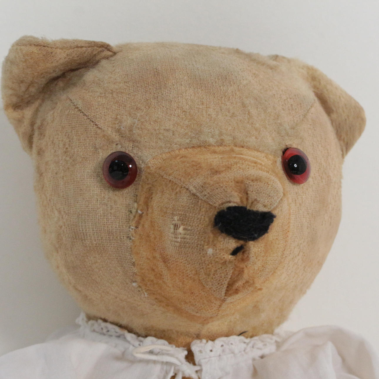 Antik bamse, blødt legetøj, fyldt med halm, mål ca.: H. 45 cm, B. 22 cm, D. 15 cm.