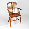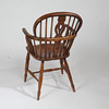 Med en buet topskinne og splatryg med spindelstøtter over et formet sæde og drejede ben, 53 cm bred, 40 cm dyb, 92 cm høj, sædet 44 cm høj.