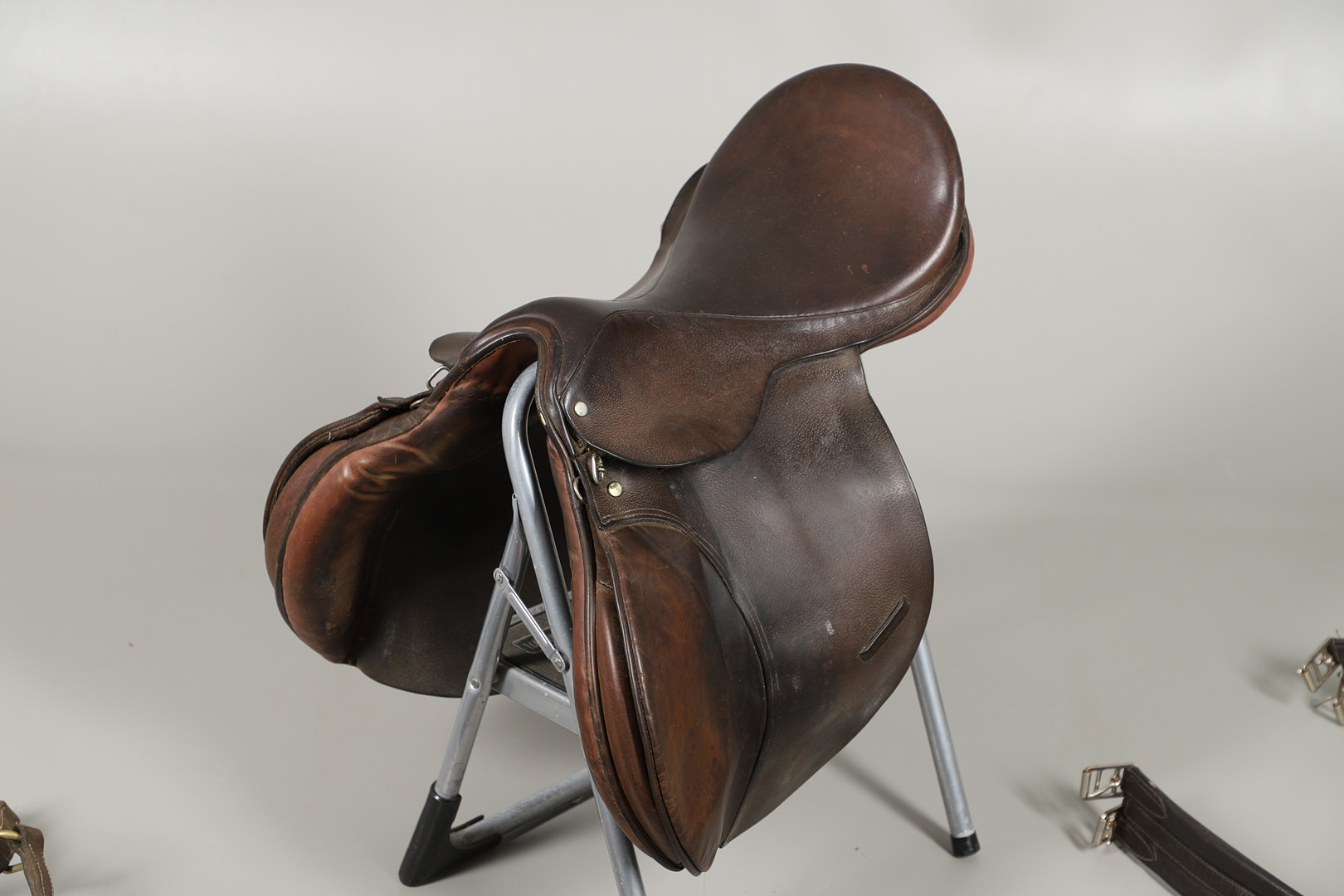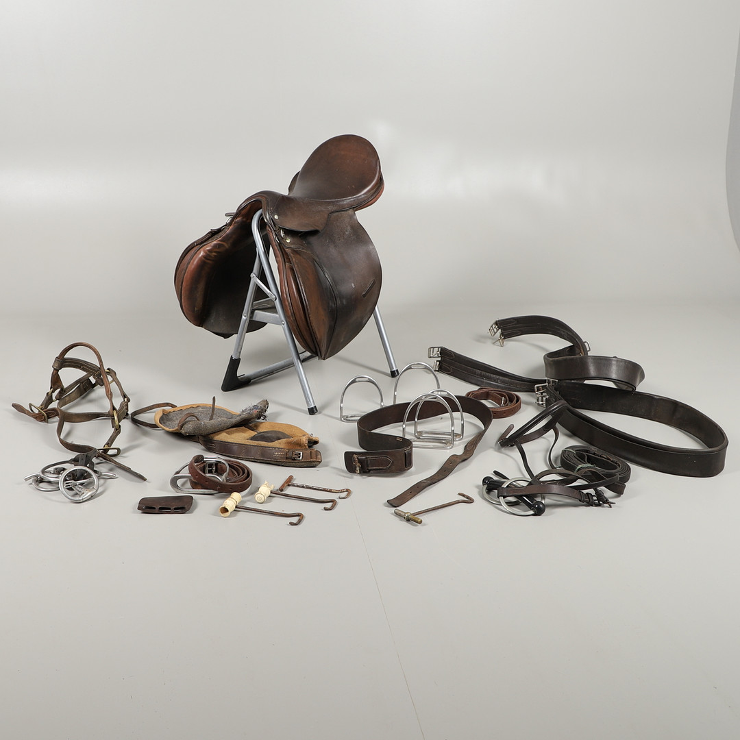 2829684. EN LÆDERSADEL MED TØJLER OSV.