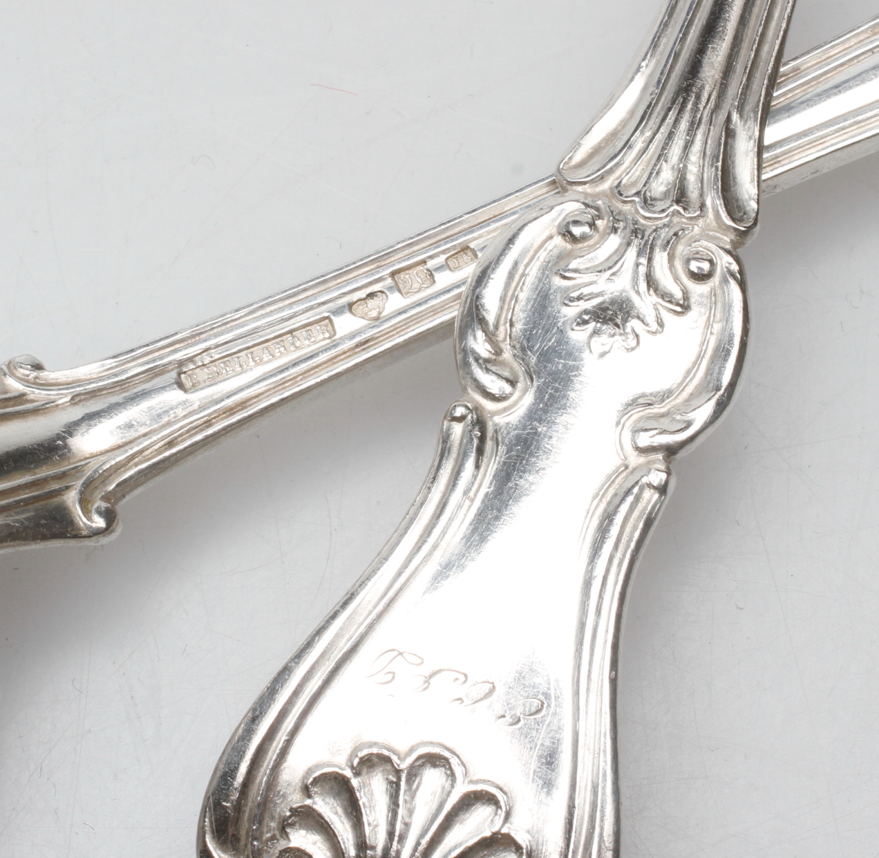 282978. SKEER, 6 stk, sølv, E. Bellander 1863, vægt ca. 384,8 gram.