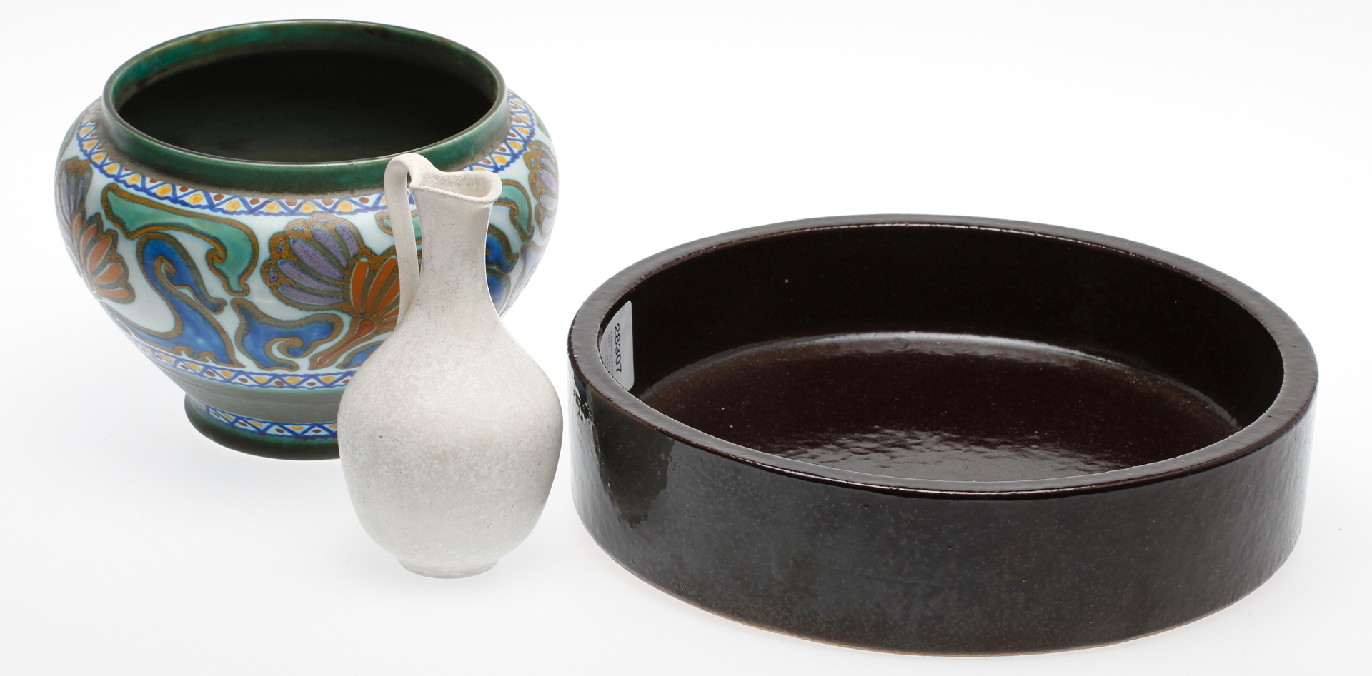 28307. KERAMISKE OBJEKTER, 3 dele, Gunnar Nylund, Gouda, Hasle.