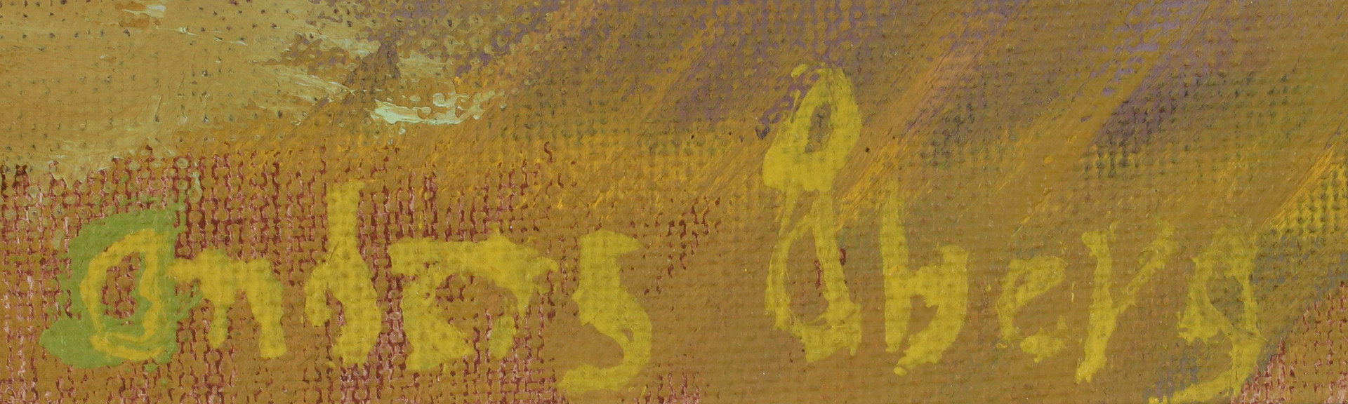 2831246. ANDERS ÅBERG. Bybillede, tempera på lærred, signeret.
