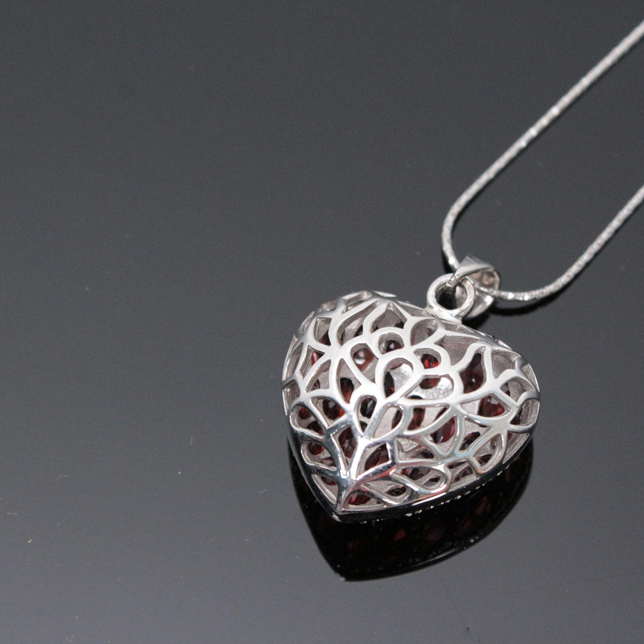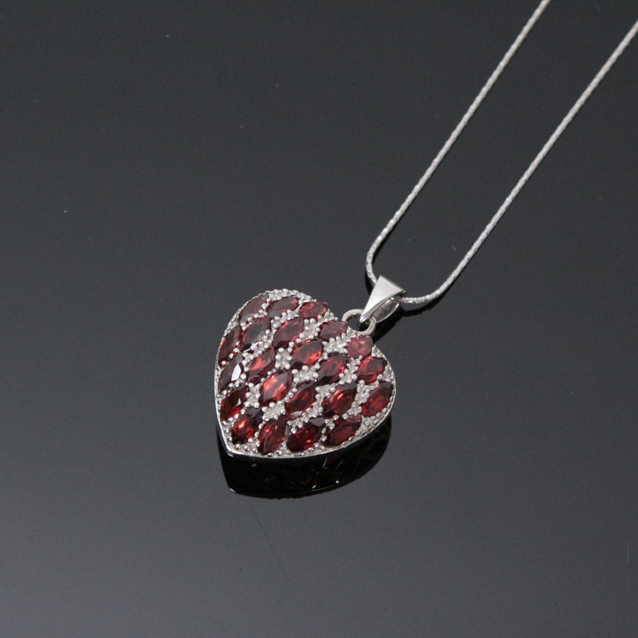 2838982. Hjertevedhæng med naturgranater, 925 sølv.