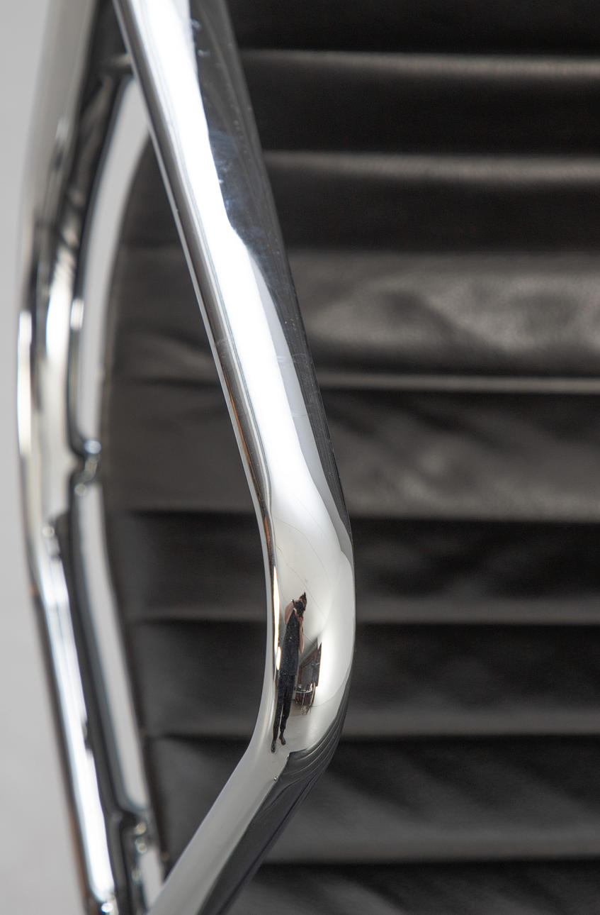 RAY & CHARLES EAMES. Vitra. Kontorstol 'Alu Chair EA 117', sort læder.