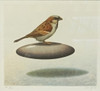 Sammensætning med gråspurv. Signeret, nummereret EA 1/15 og dateret '88. Billedmål: ca 23 x 25,5 cm. Rammemål: ca 41 x 42 cm.