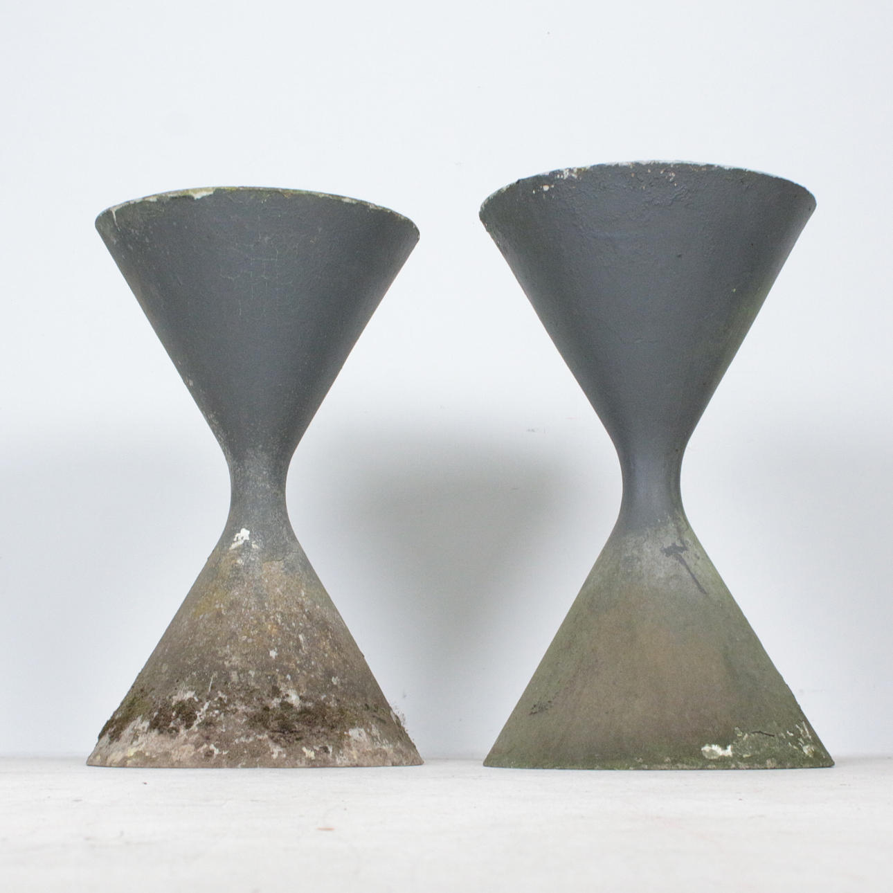 Willy Guhl, to 'Diabolo' plantekasser, cement, mål hver ca.: H. 89 cm, Ø 54 cm.
