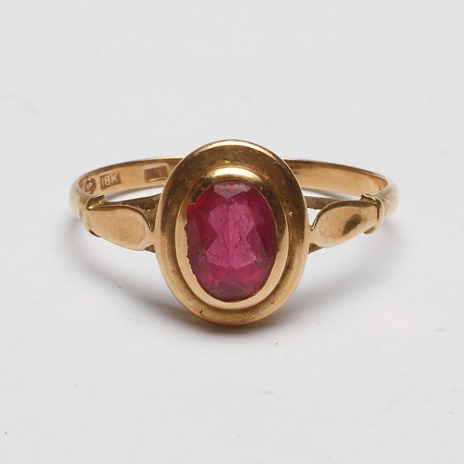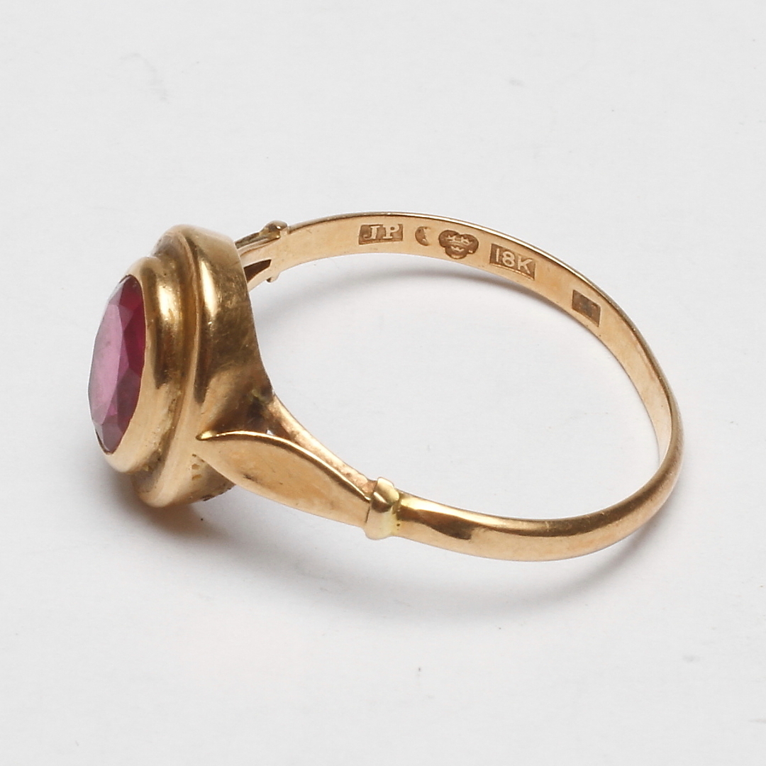 284749. RING MED RØD STEN, 18k guld, vægt ca. 1,9 gr.