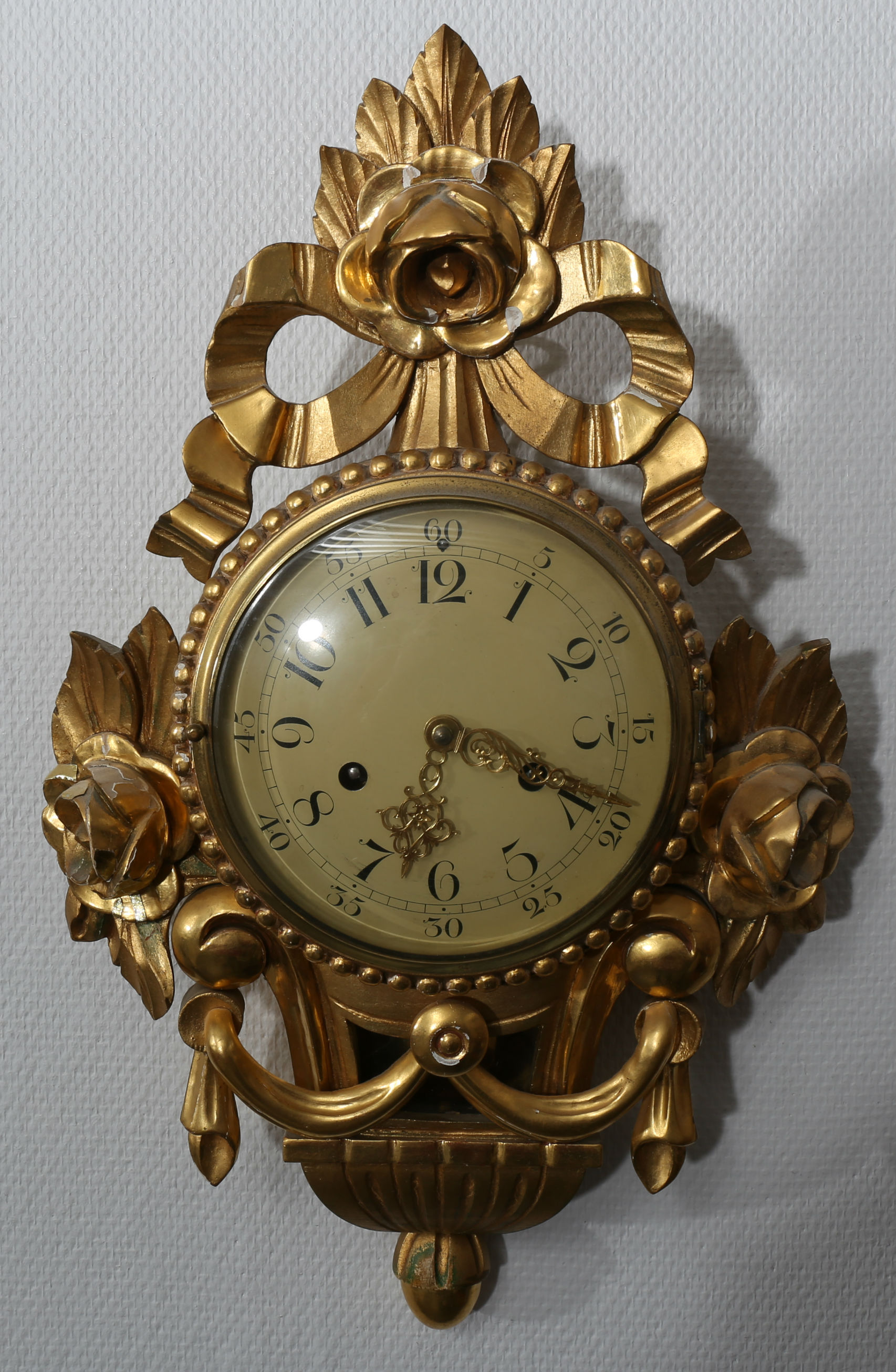 284768. VÆGPENDUL, træ, forgyldt, 20. århundrede.