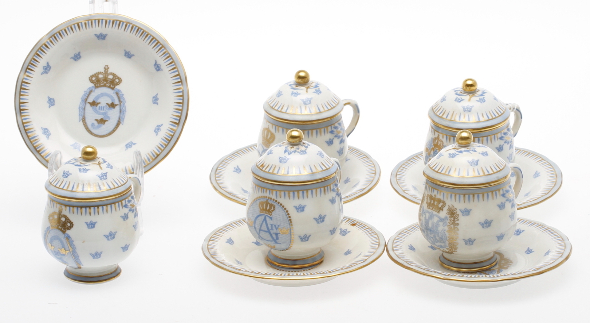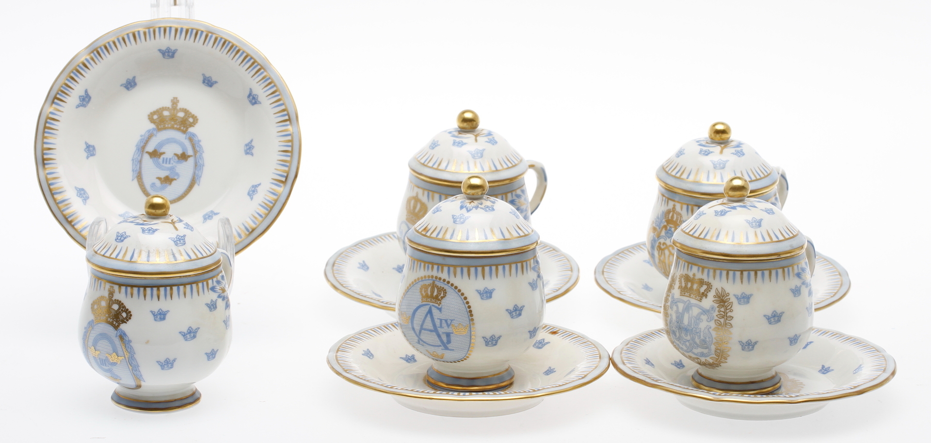 28534. FLØDEKOPPER MED LÅG OG FAD, 5 stk, Rörstrand.