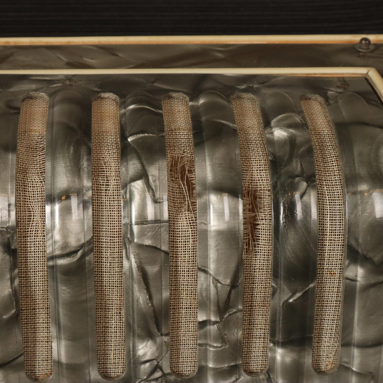 Brugsslitage, hul i stof over lydåbning. Ikke fuldt gennemgået.